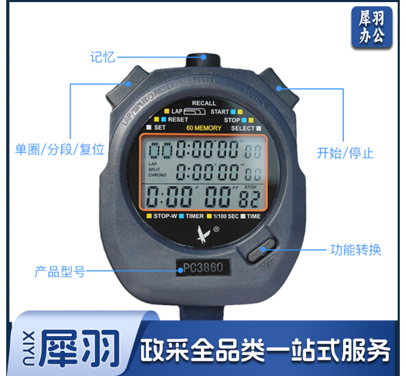 天福 PC3860 多功能秒表 三排60道 计时器 电子户外运动裁判田径跑步计时秒表
