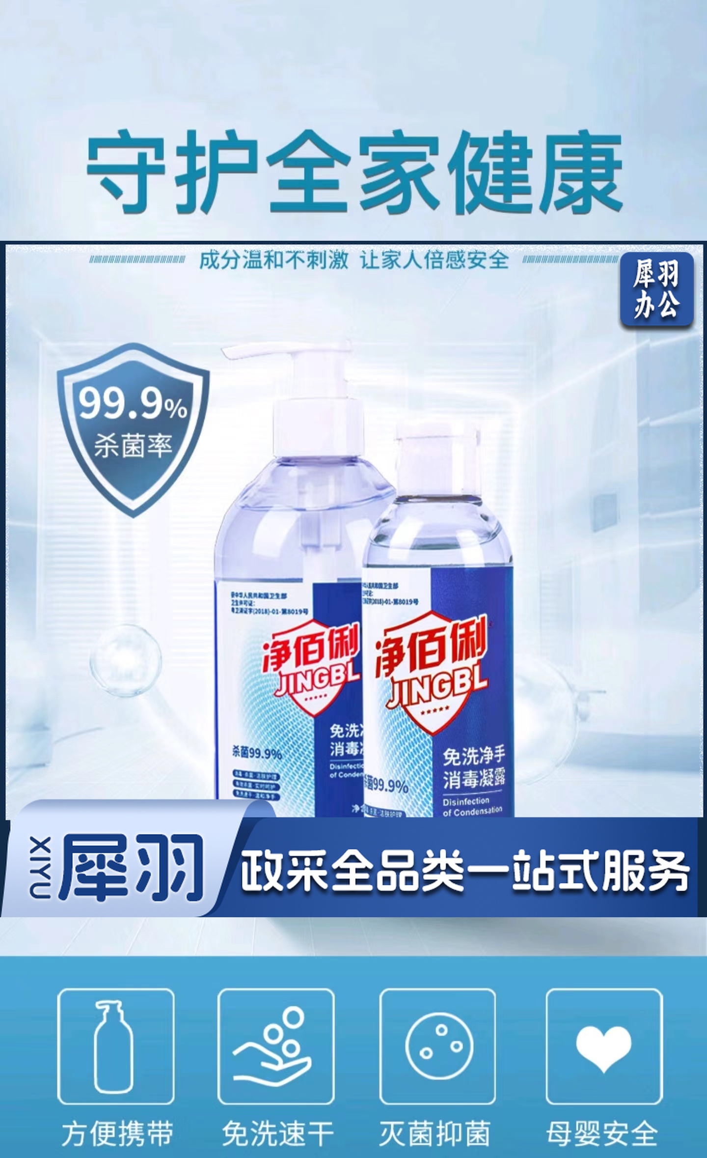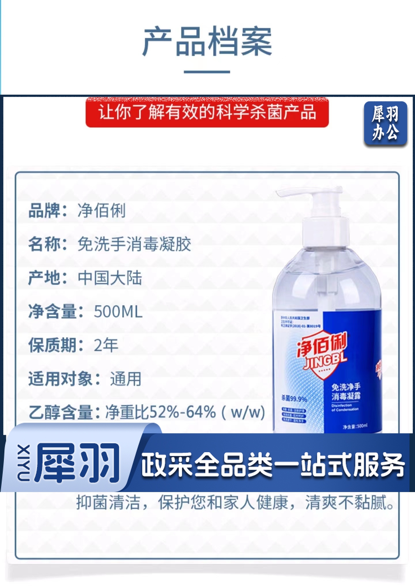 净佰俐乙醇免洗手消毒凝露500ml*24瓶 含75%酒精消毒 居家外出公共场所