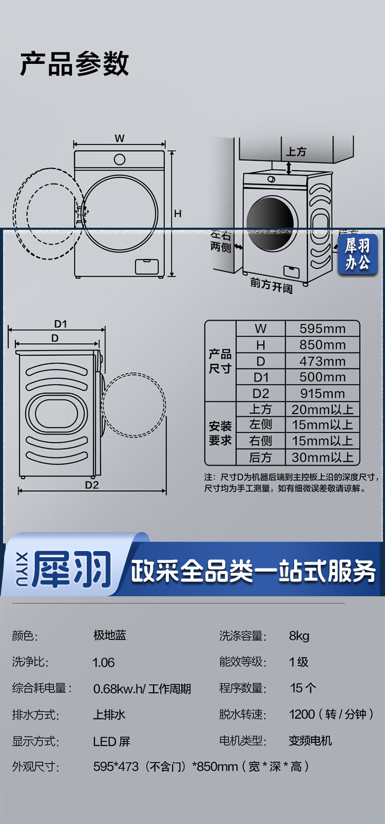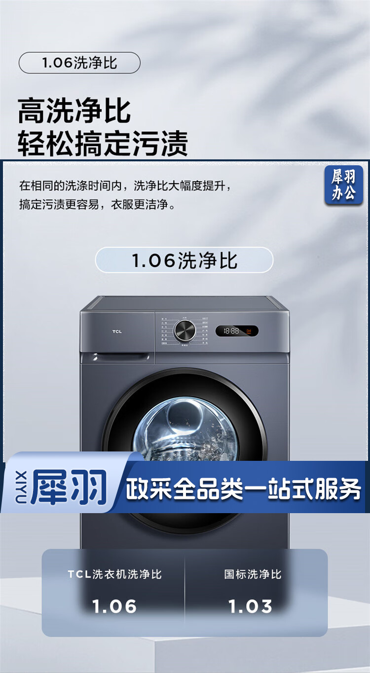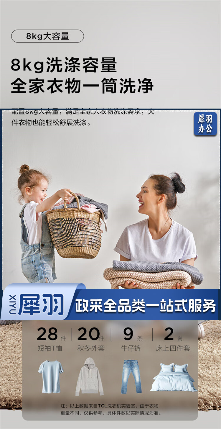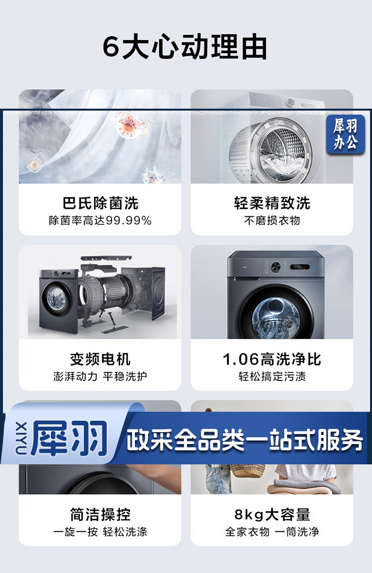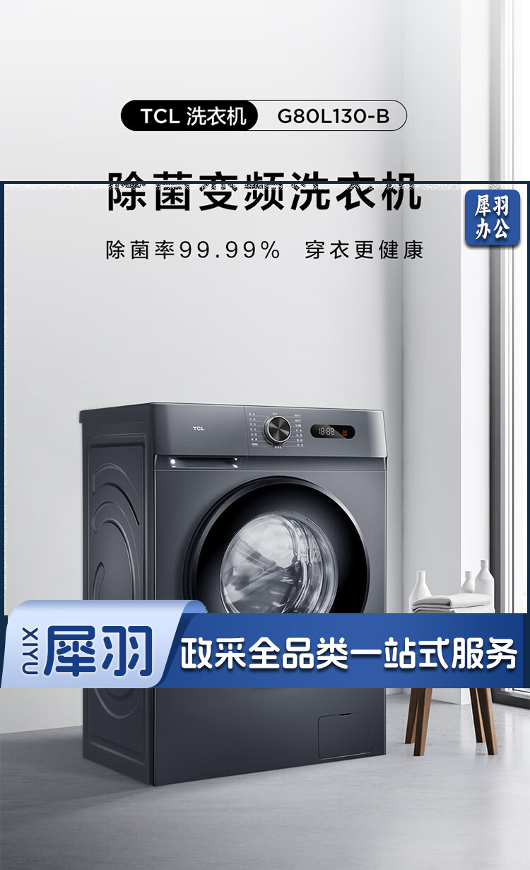 TCL 8KG除菌变频洗衣机 L130 巴氏除菌 一级能效 中途添衣 除菌率≈100% G80L130-B