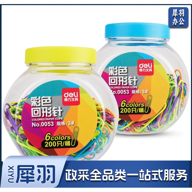 得力(deli) 0053 3#彩色防锈曲别针 200枚/桶
