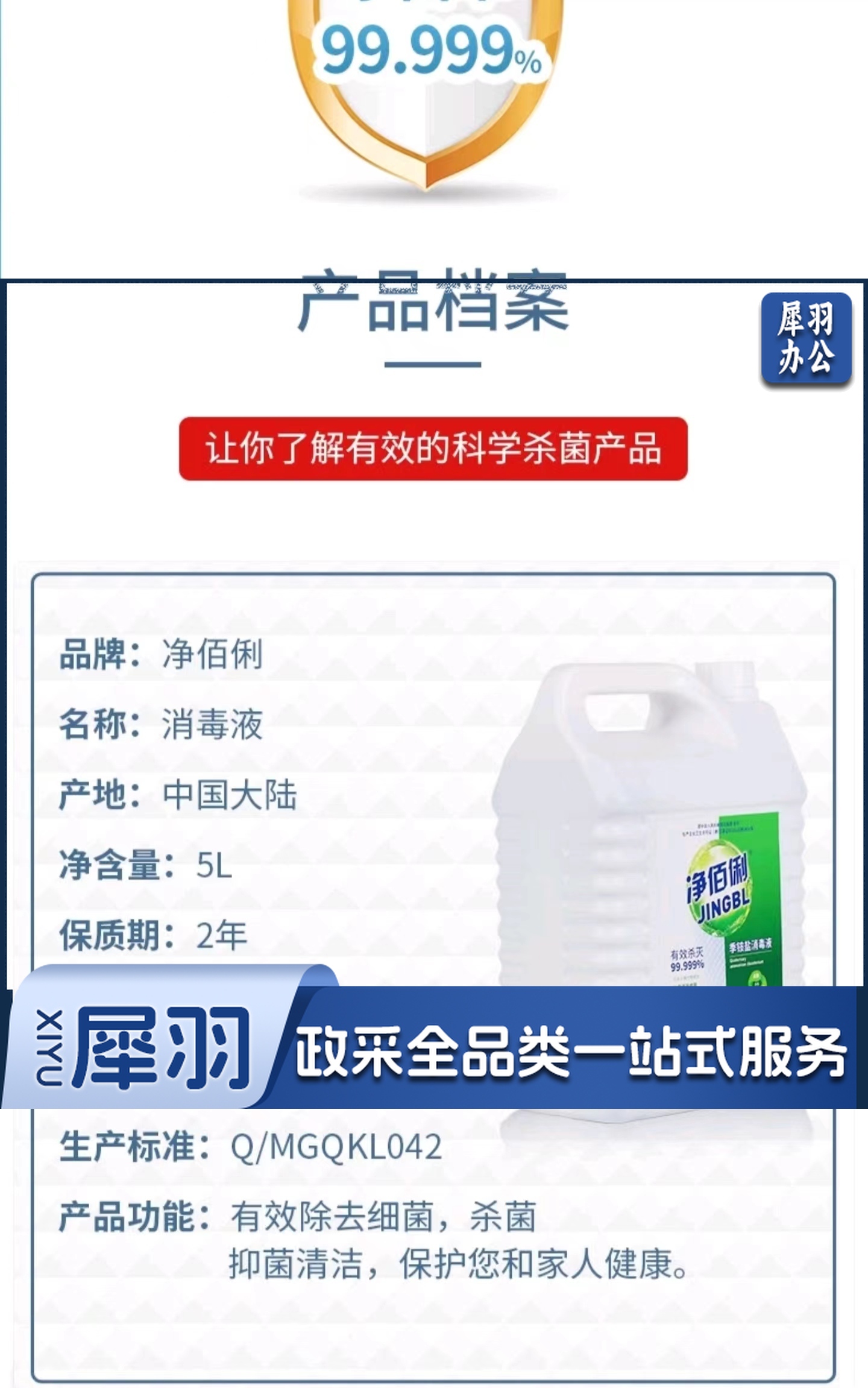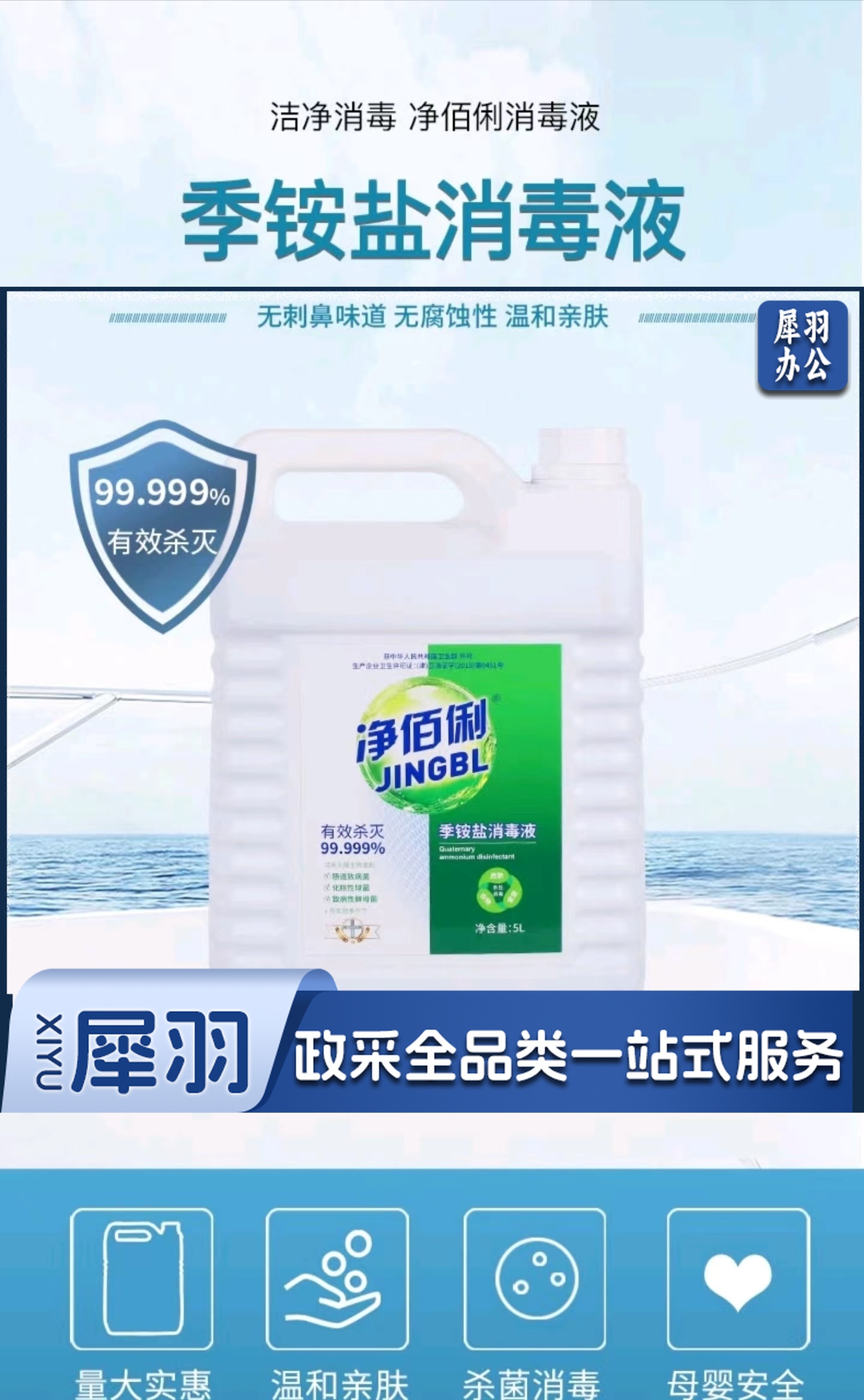 净佰俐季铵盐消毒液5L*4桶整箱 酒店工业单位家居