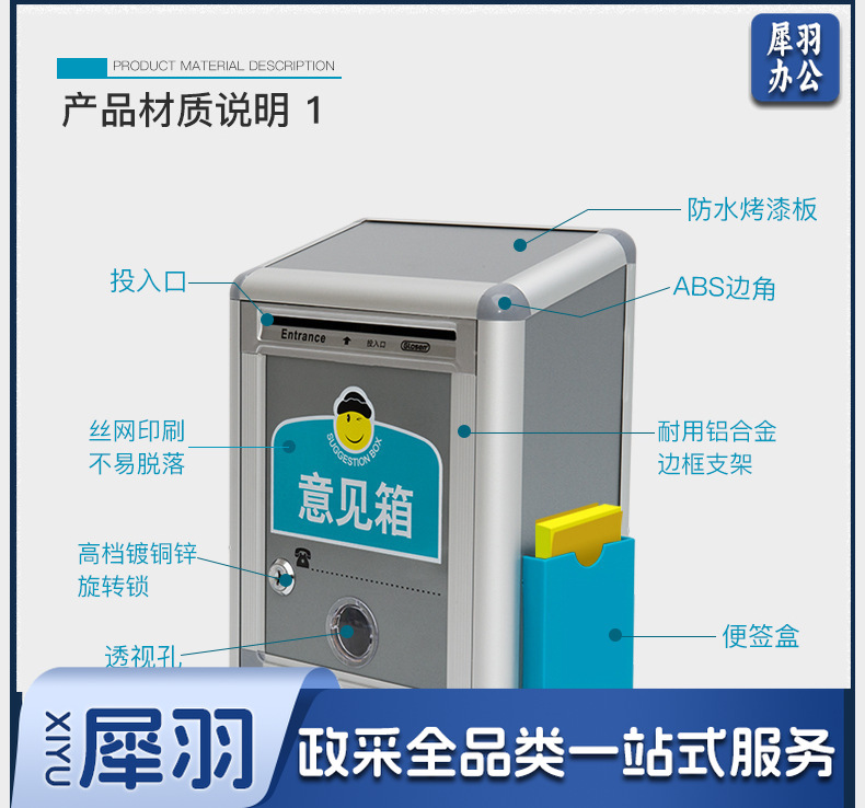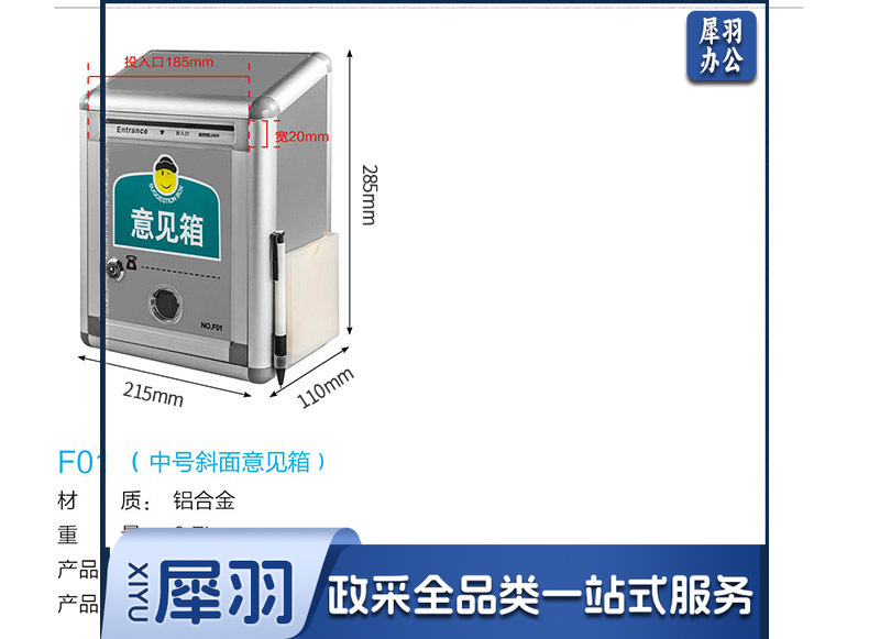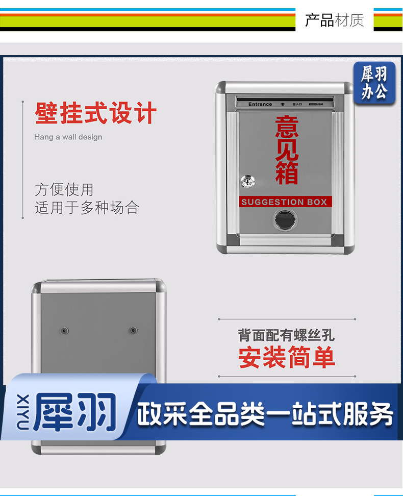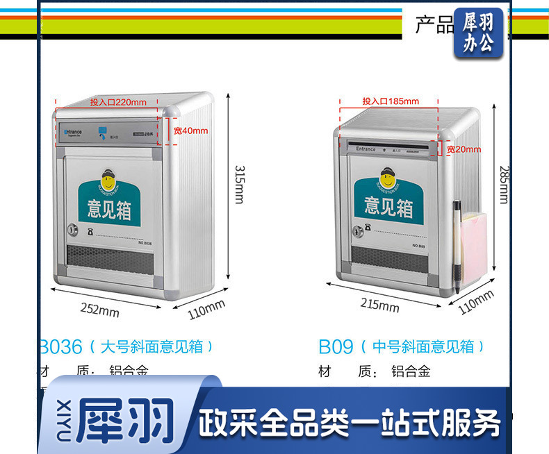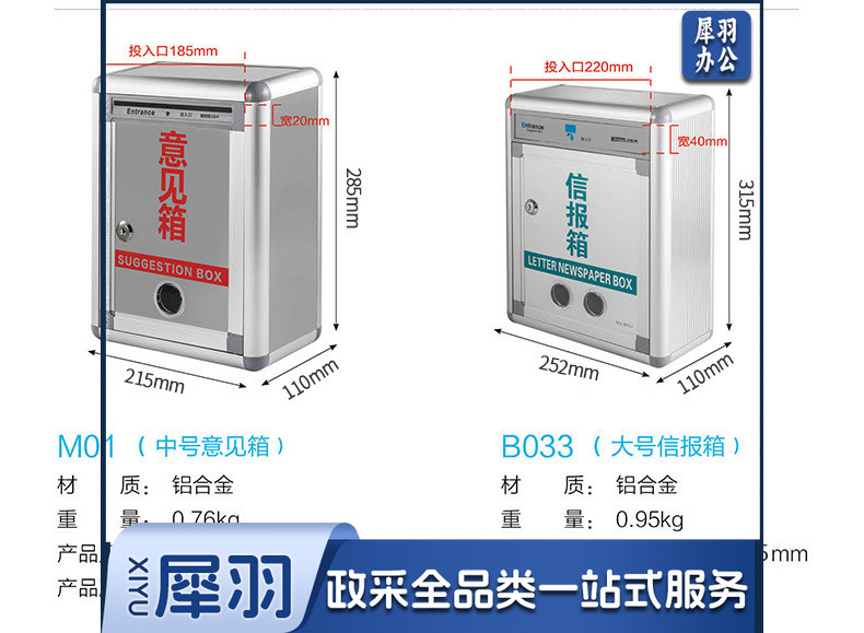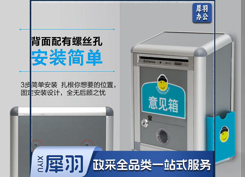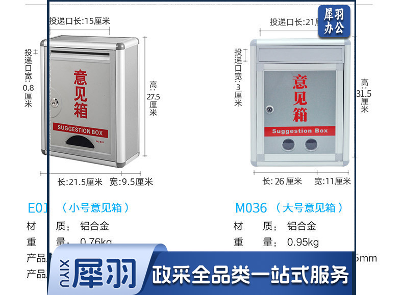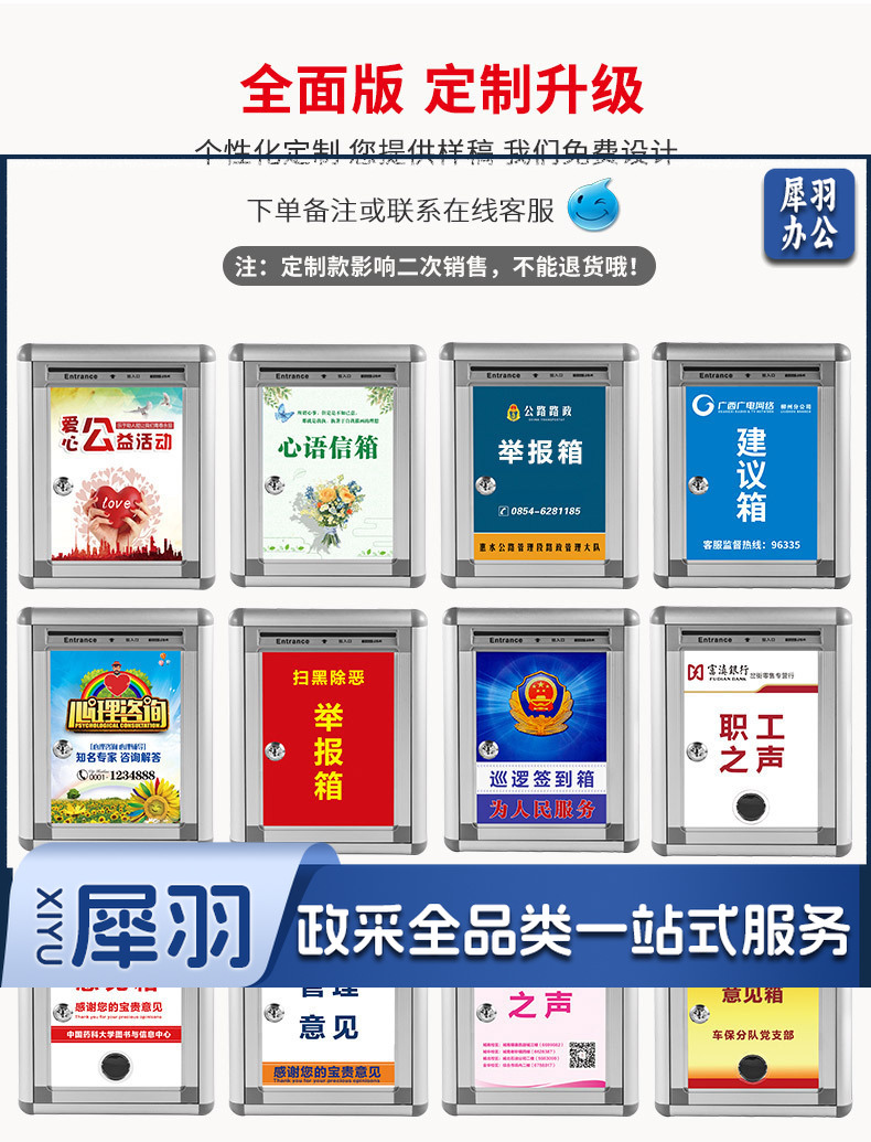 E02信箱意见箱 挂墙铝合金带锁室外小号捐款箱logo信报箱选举箱