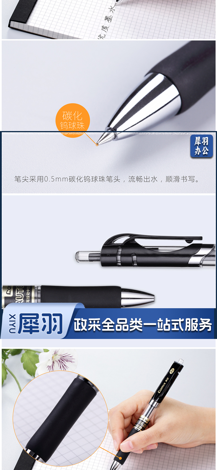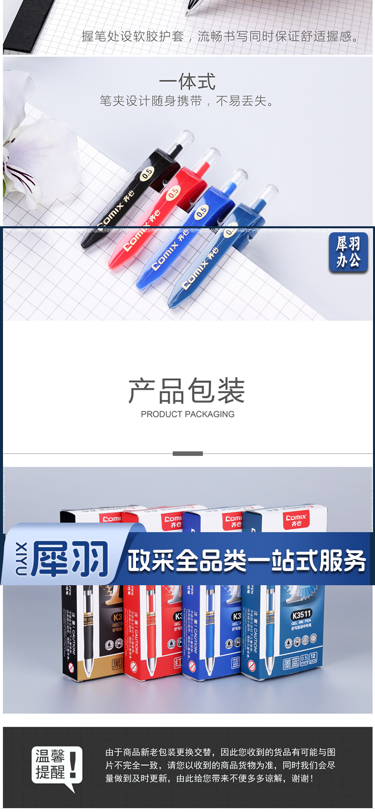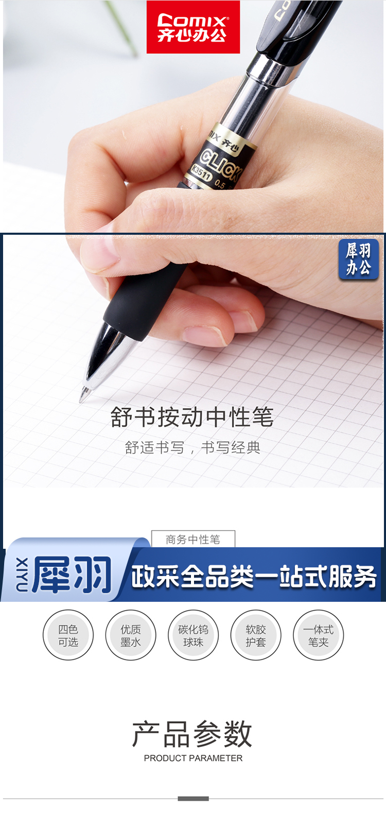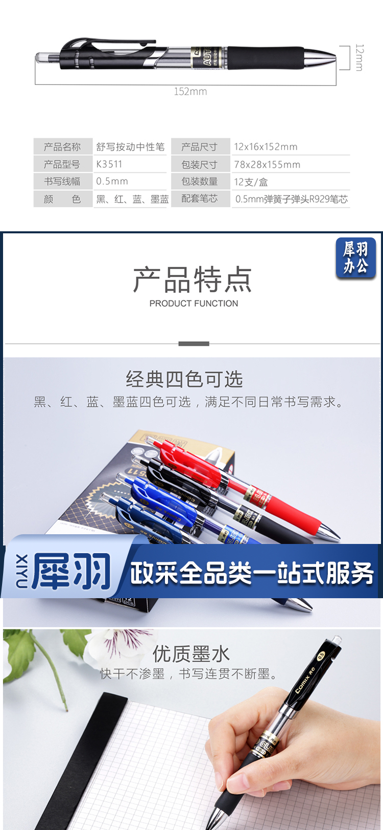 齐心/COMIX K3511 舒写按动中性笔 0.5mm匹配笔芯 R929 墨蓝 12支/盒 单位:盒
