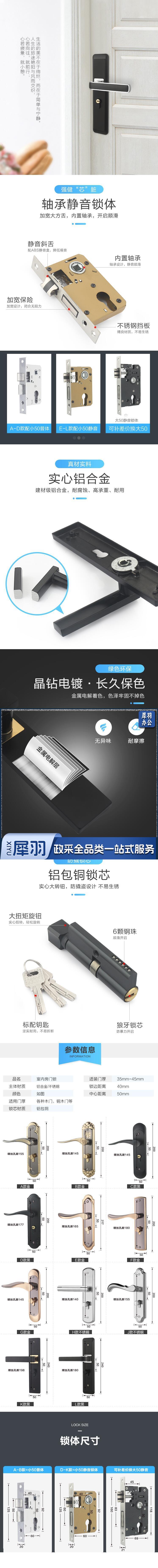 房门锁室内卧室实木门锁简约黑色静音门锁家用锁老式门把手通用型 F款