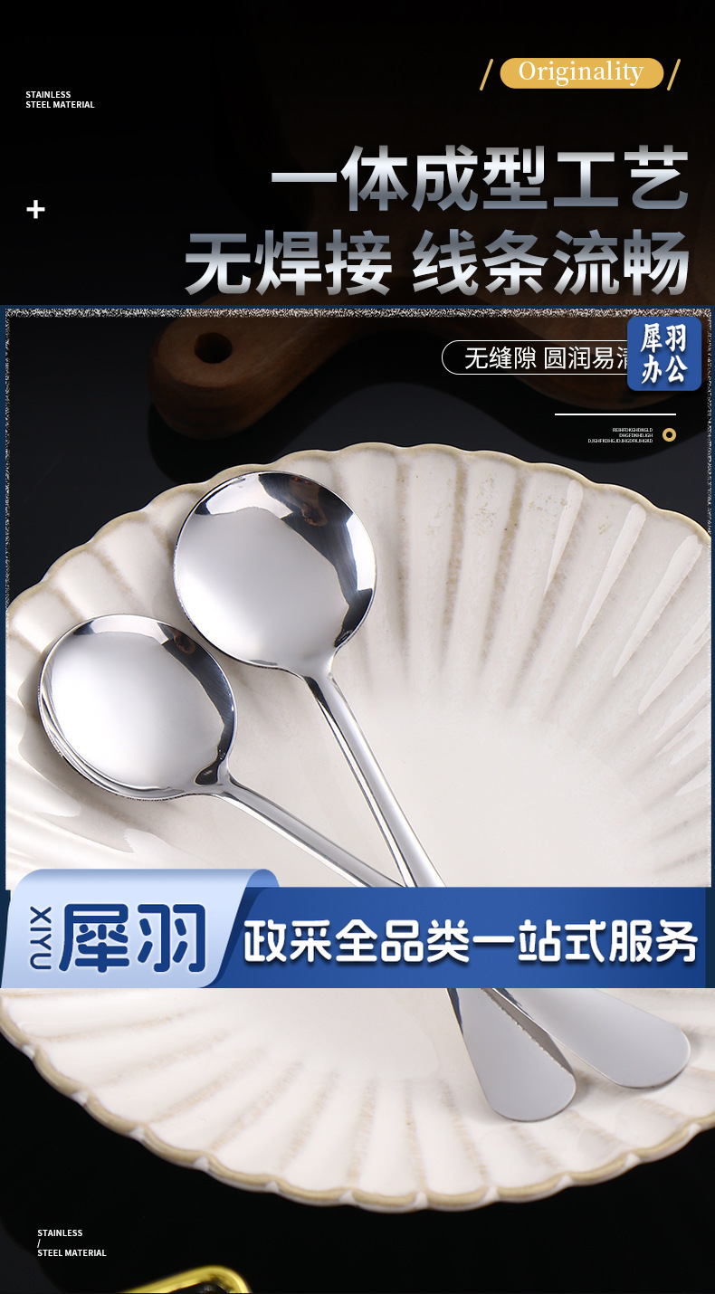 圆勺家用不锈钢勺子加厚小圆汤勺高颜值简约厨具调羹勺吃饭小汤勺