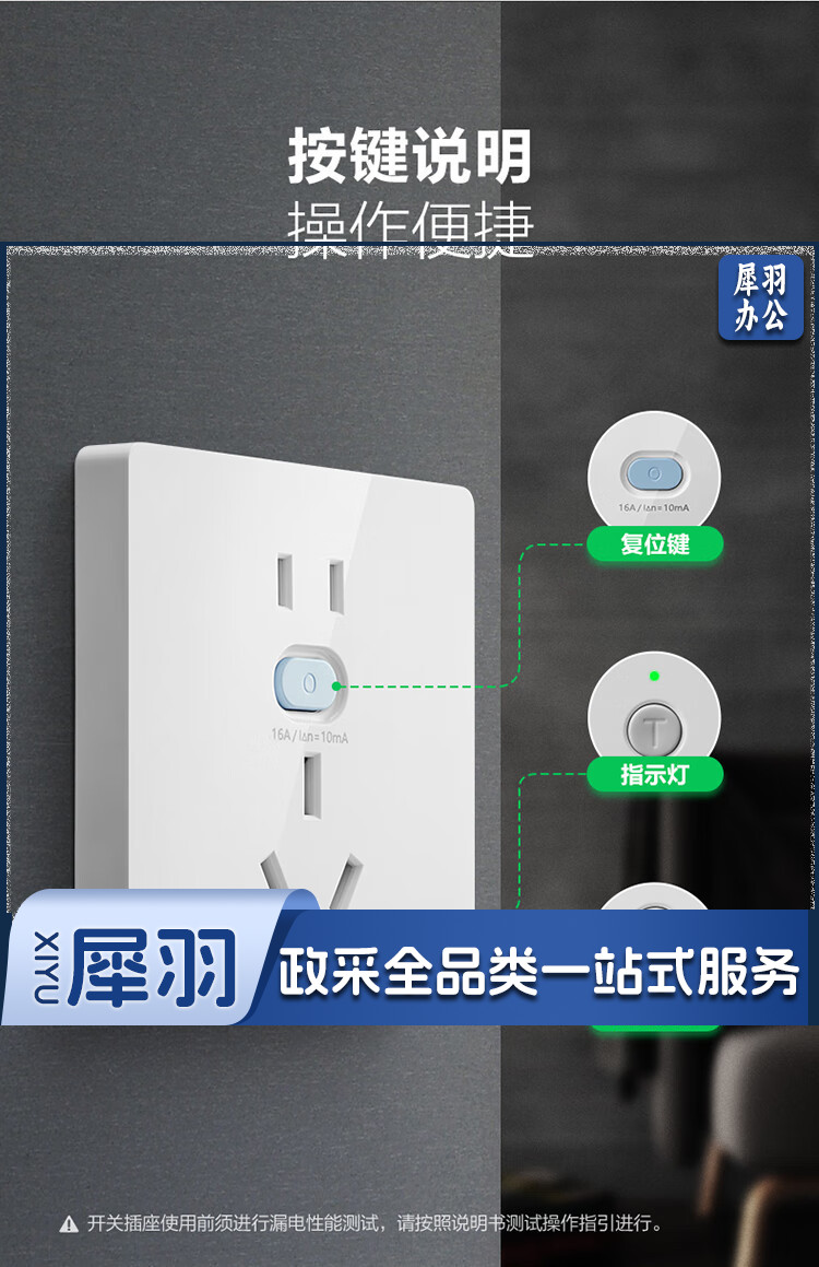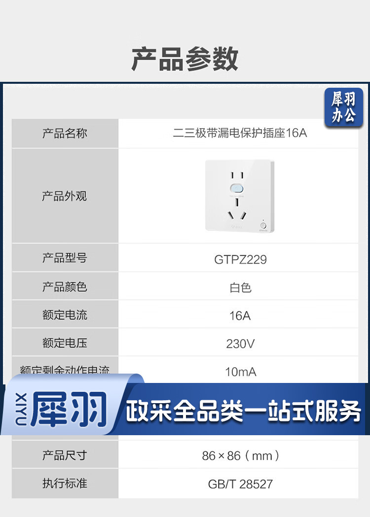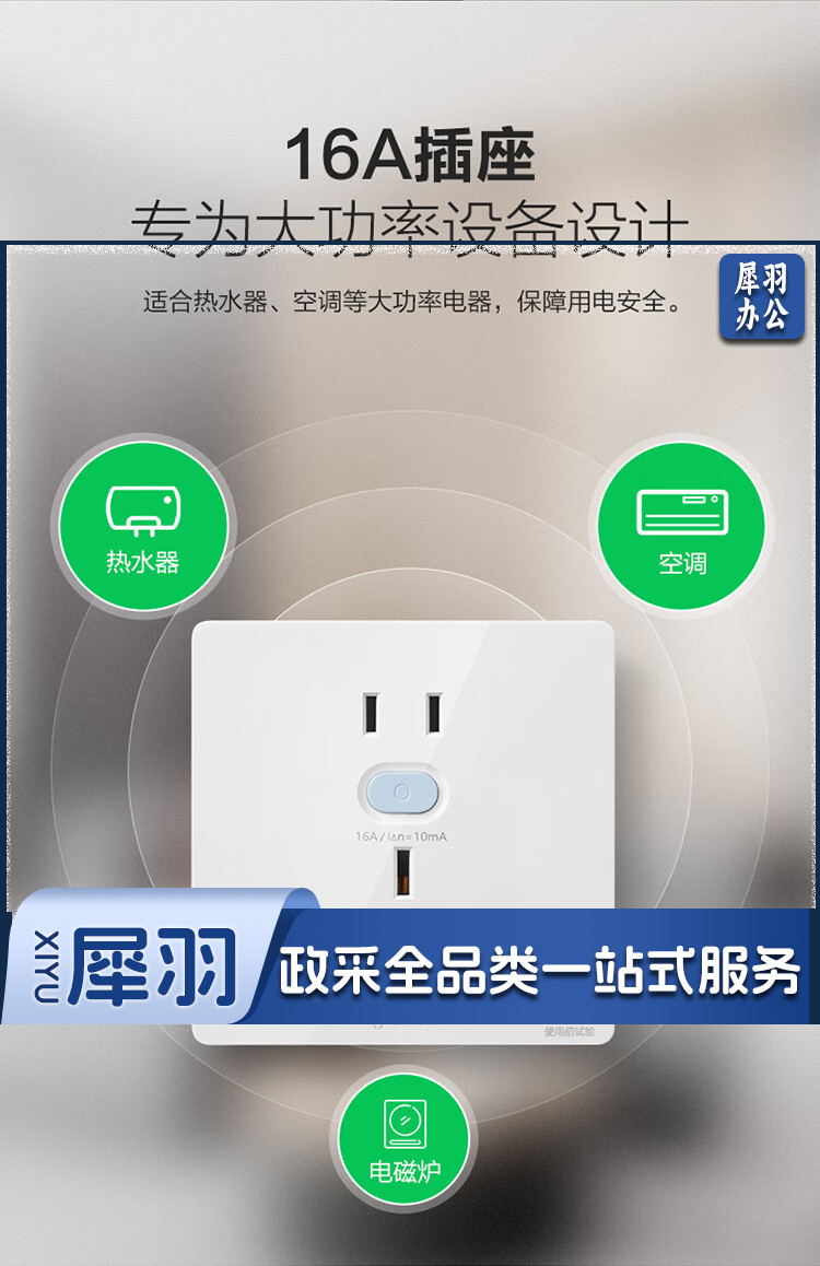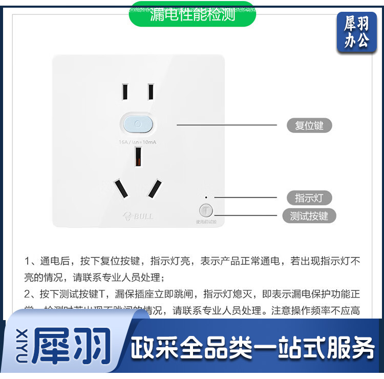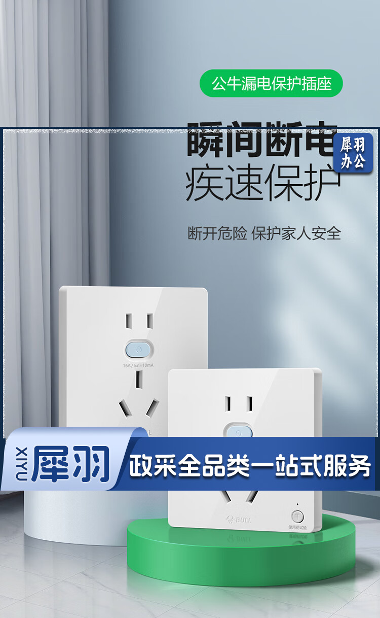 公牛(BULL)开关插座 GTP系列 16A正五孔带漏电保护插座GTPZ229暗装