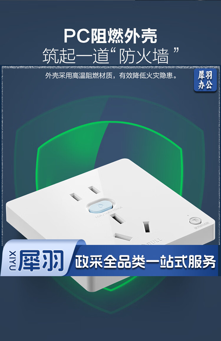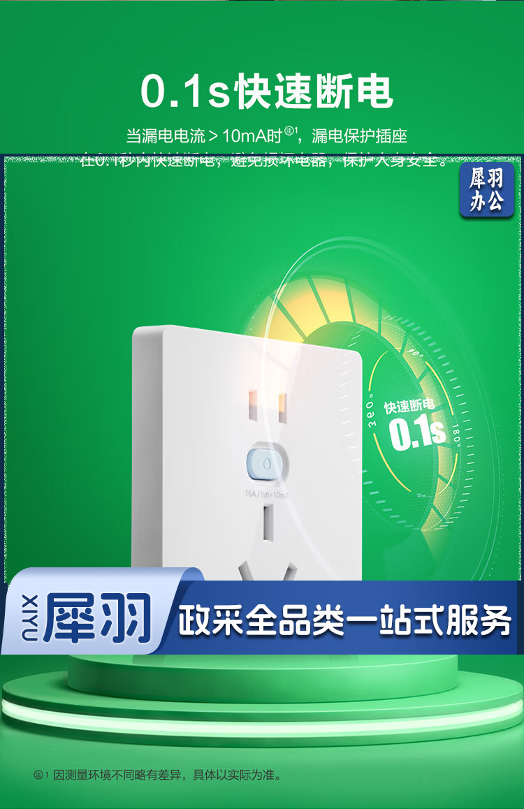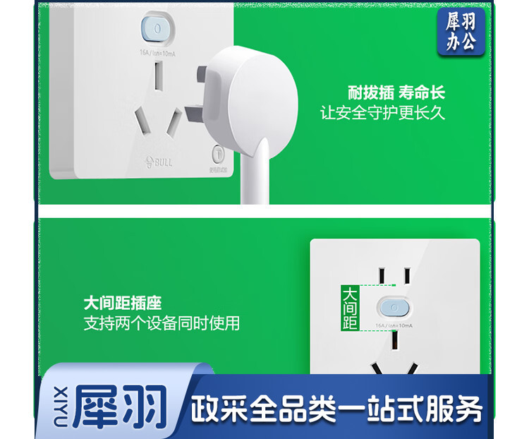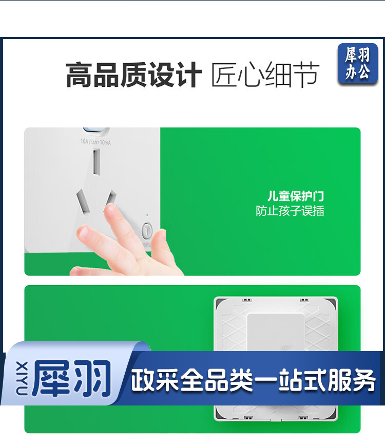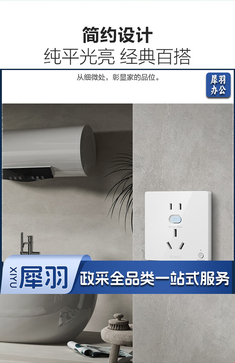 公牛(BULL)开关插座 GTP系列 16A正五孔带漏电保护插座GTPZ229暗装