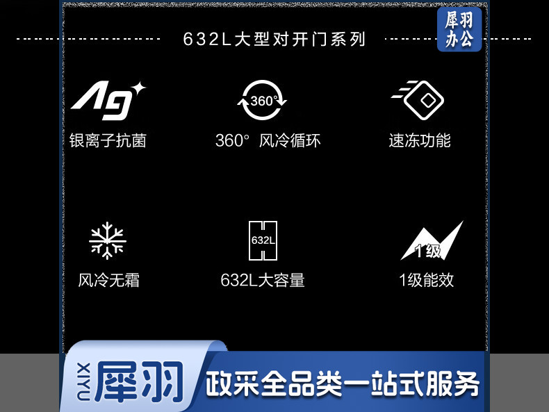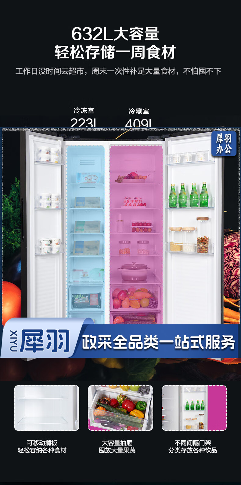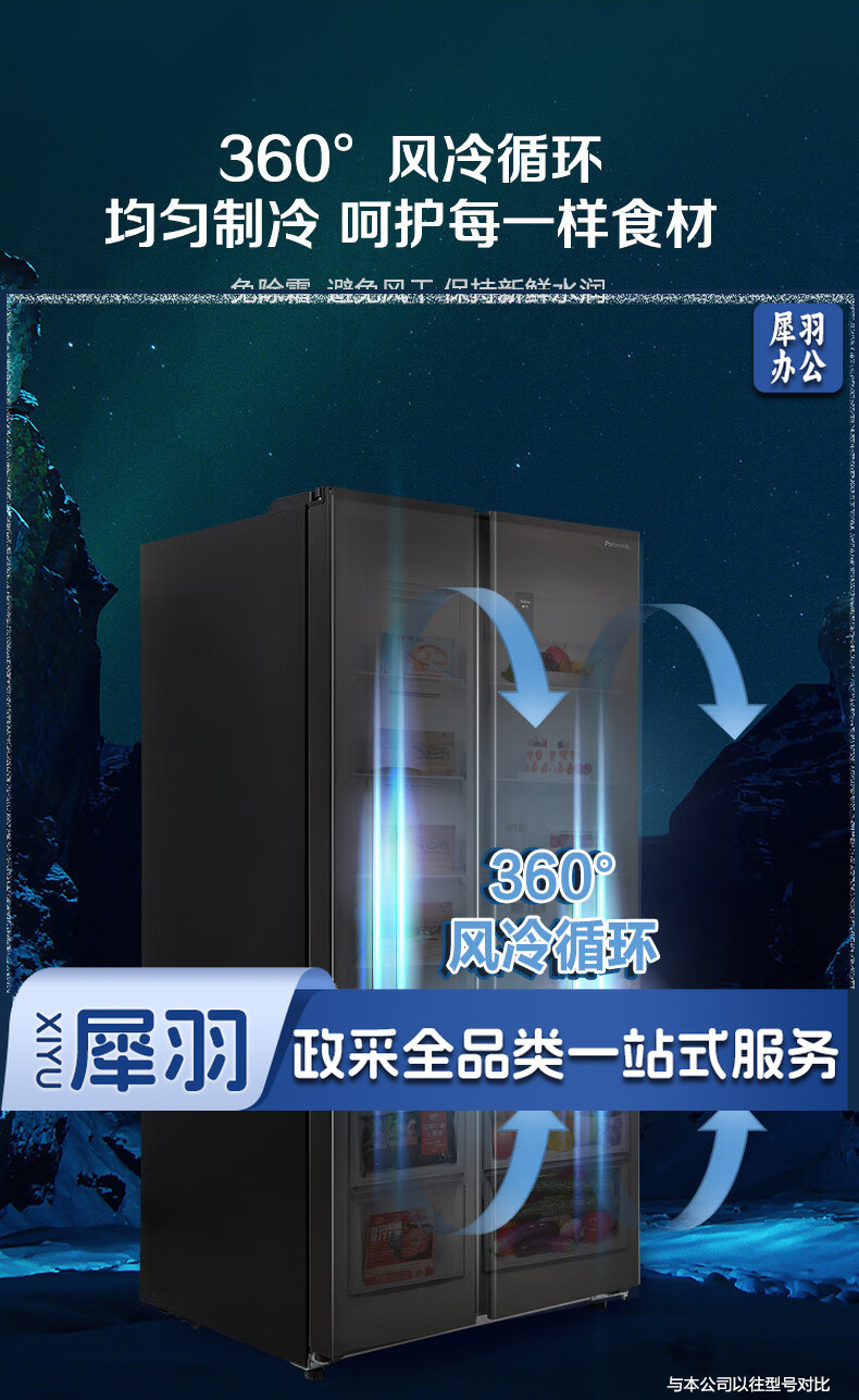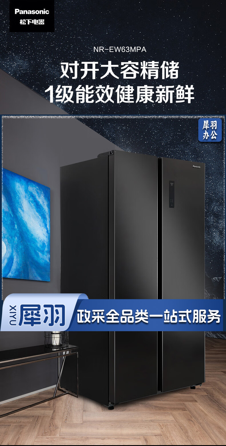 松下(Panasonic)632升对开门双开门冰箱一级能效风冷无霜变频抗菌 大容量节能家用NR-EW63MPA-B