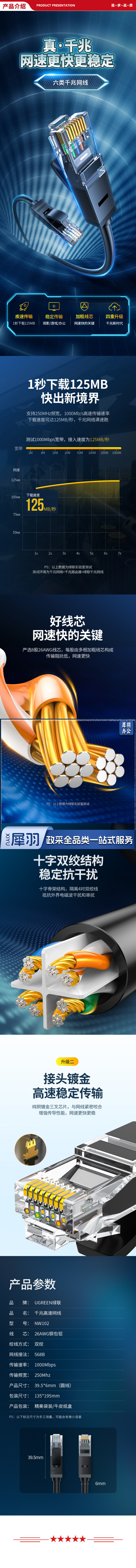 绿联 UGREEN 20160 六类网线 黑色 2米