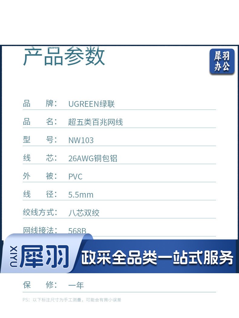 绿联(UGREEN)超五类网线 Cat5e超5类成品线 电脑宽带连接百兆网络 非屏蔽八芯8芯双绞跳线10米 30642