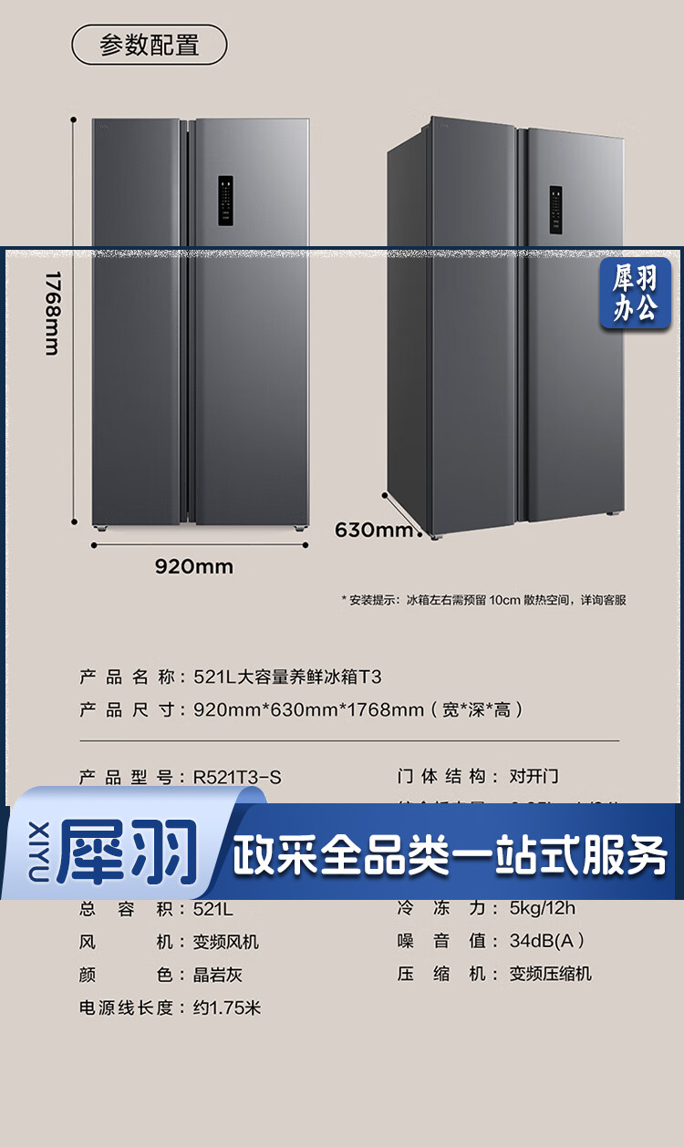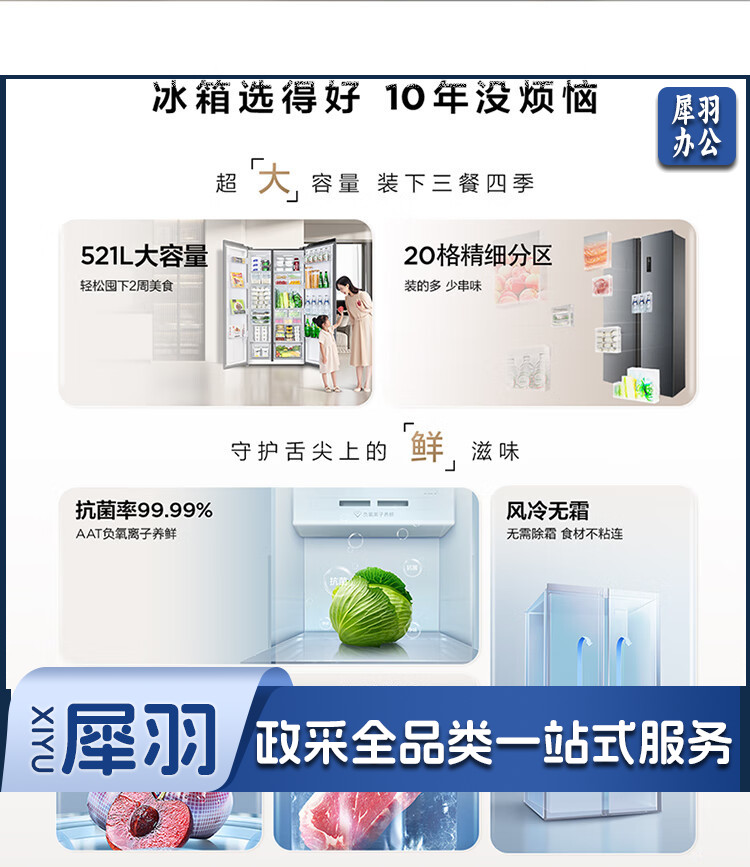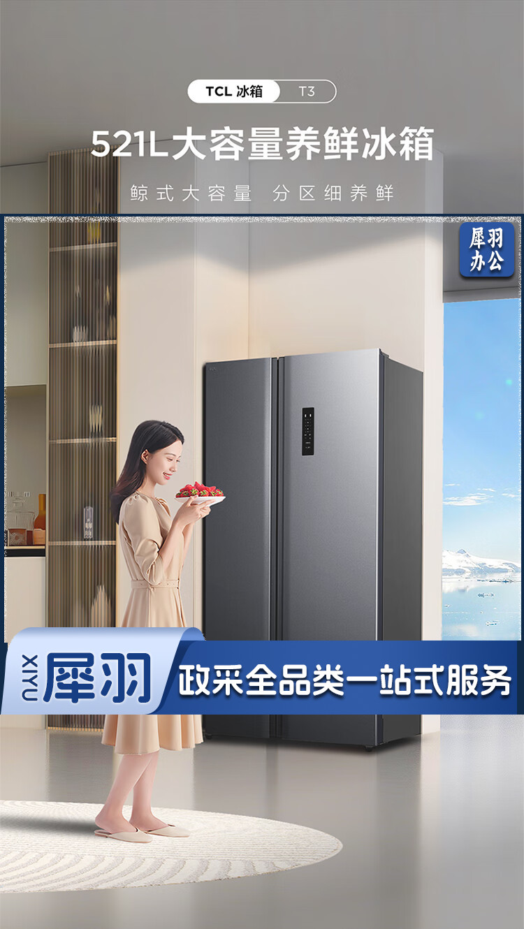 TCL 521升T3大容量分区养鲜冰箱对开门双开门超薄嵌入一级能效 风冷无霜 双变频家用电冰箱R521T3-S