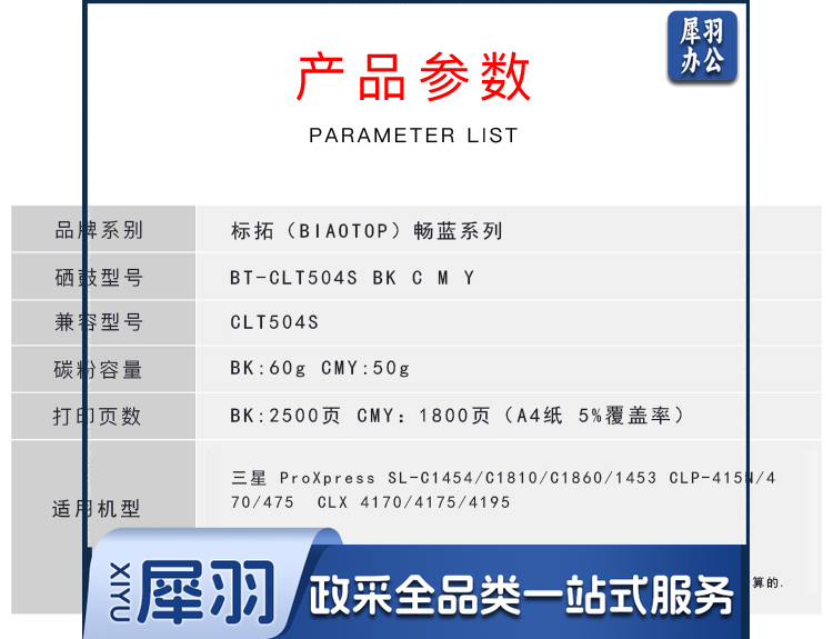 标拓 (Biaotop) CLT 504S硒鼓适用三星C1454/C1810/C1860/1453 415N/470/475 4170/4175打印机 畅蓝系列(下单备注颜色)