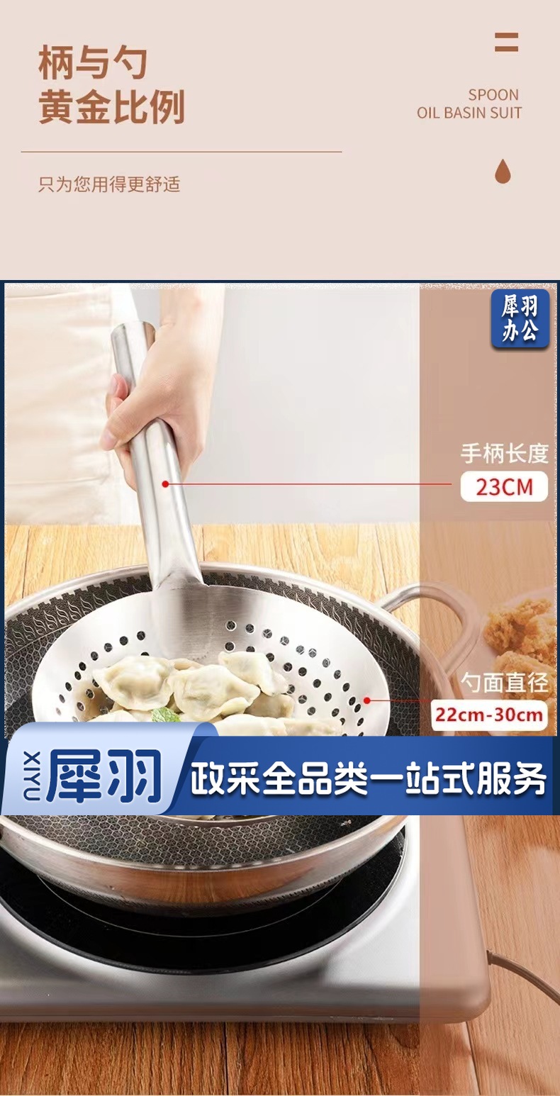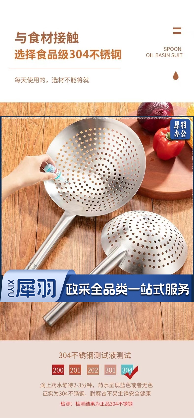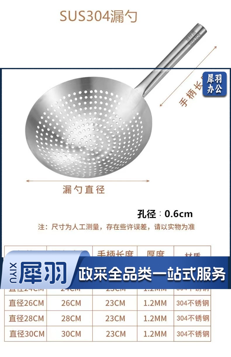 28cm漏勺304不锈钢大漏勺加厚油炸厨师商用厨房过滤304大捞勺笊篱