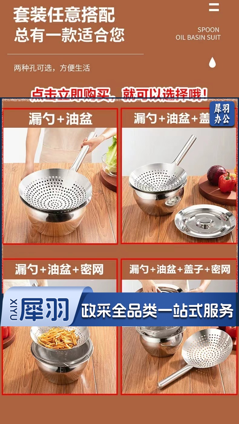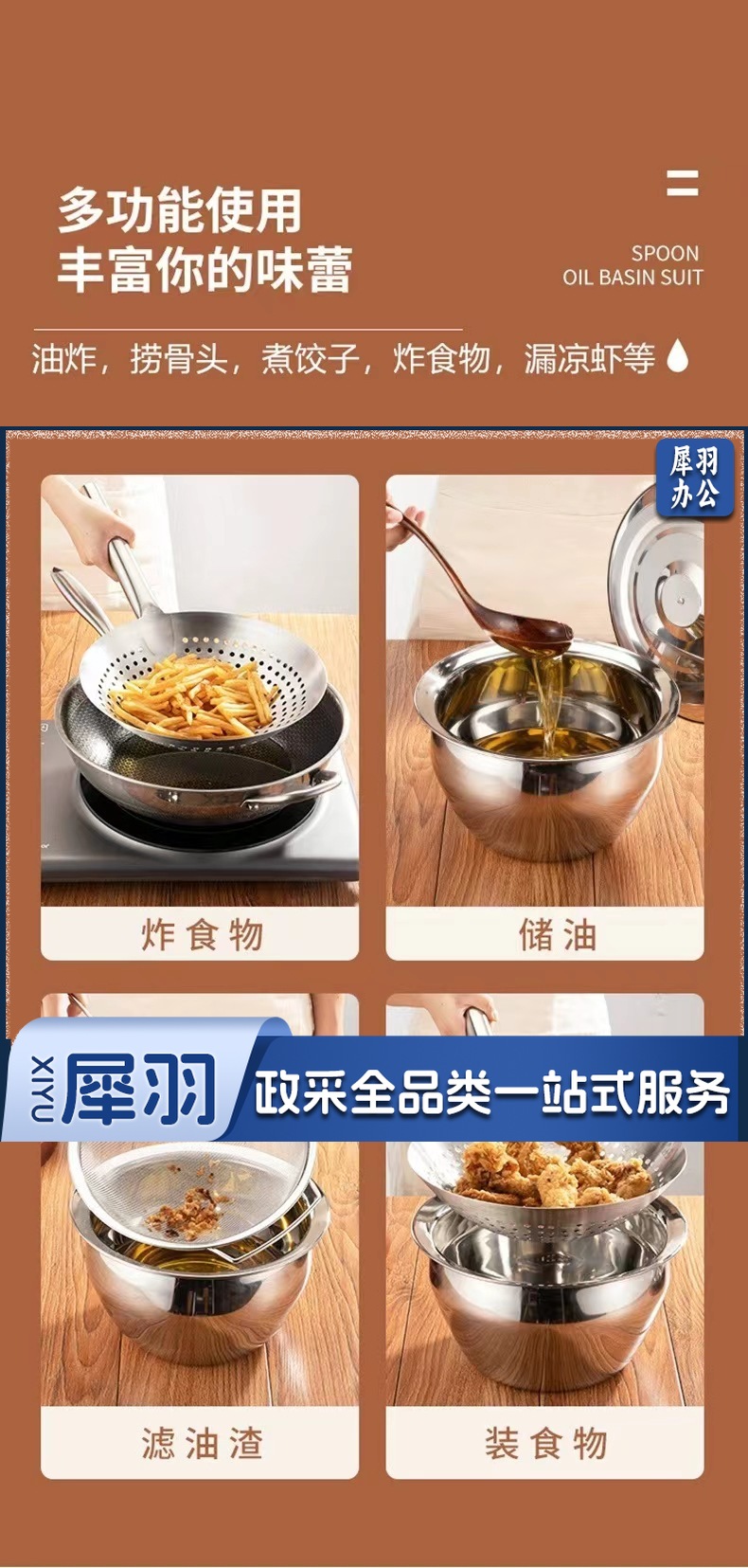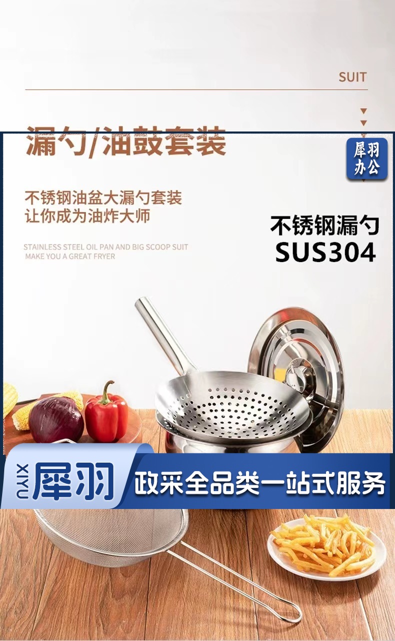 28cm漏勺304不锈钢大漏勺加厚油炸厨师商用厨房过滤304大捞勺笊篱