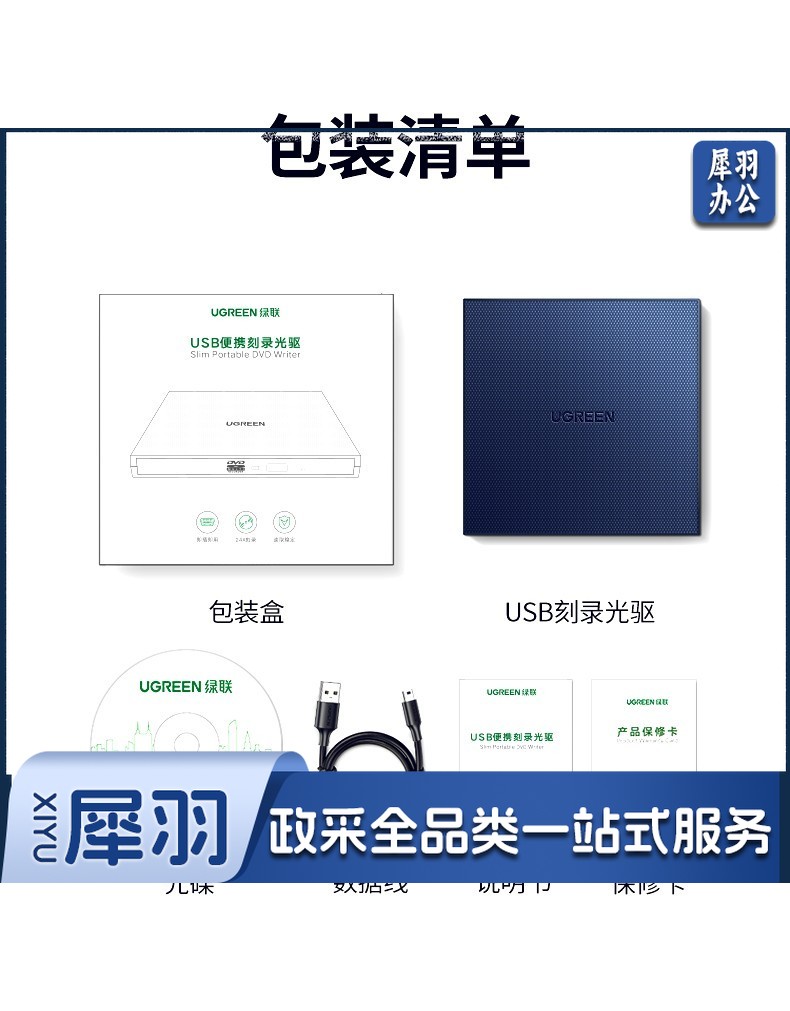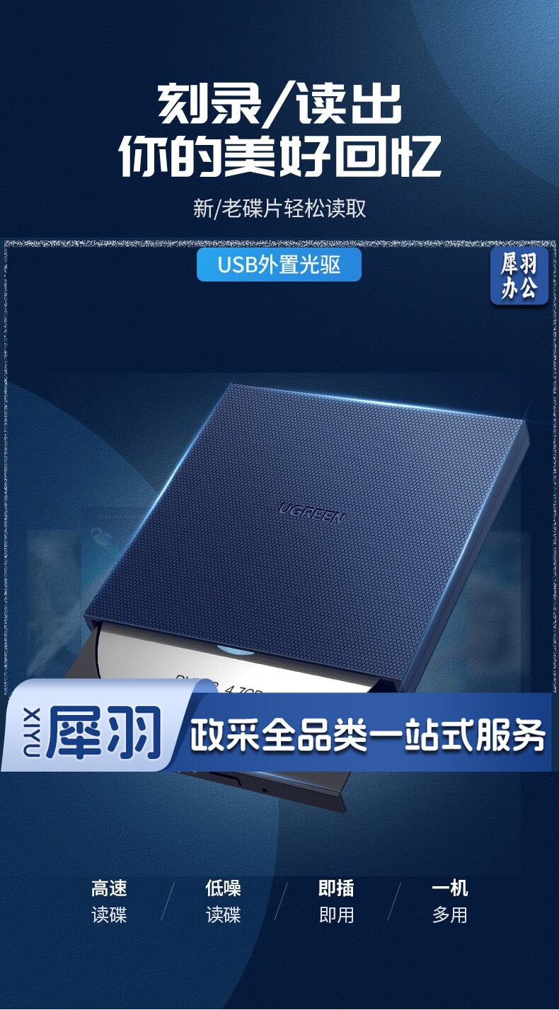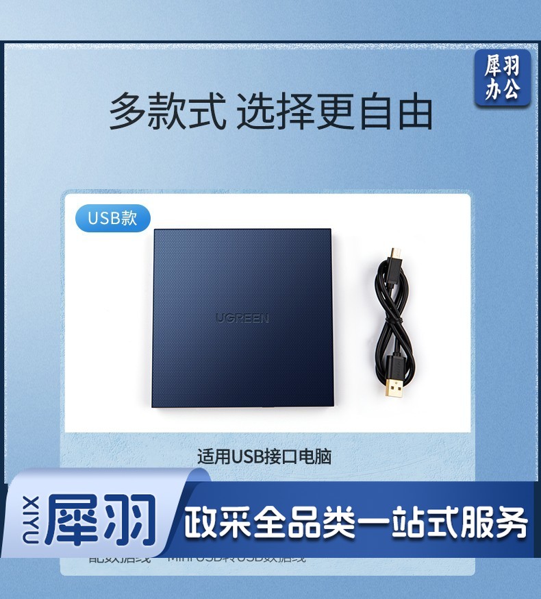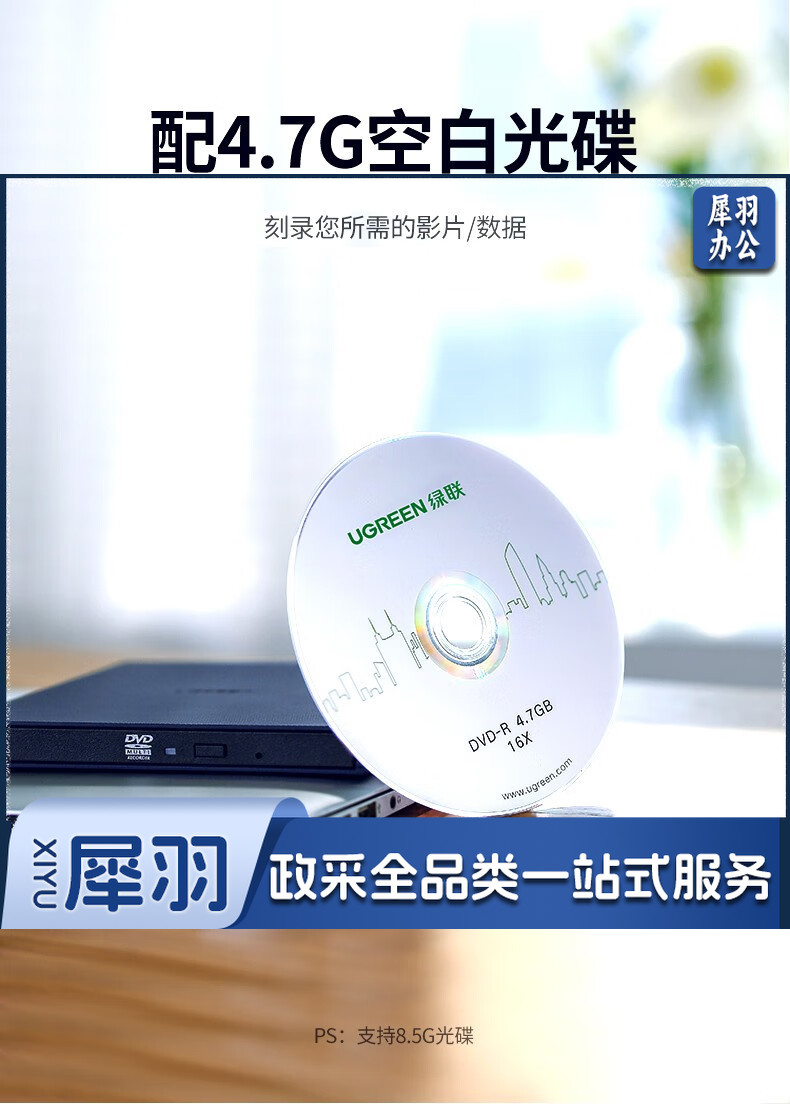 绿联(UGREEN)40576 外置光驱盘USB-C接台式Type-C笔记本电脑刻录机DVD/CD/VCD通用8/CD24倍速 USB款 免装驱动