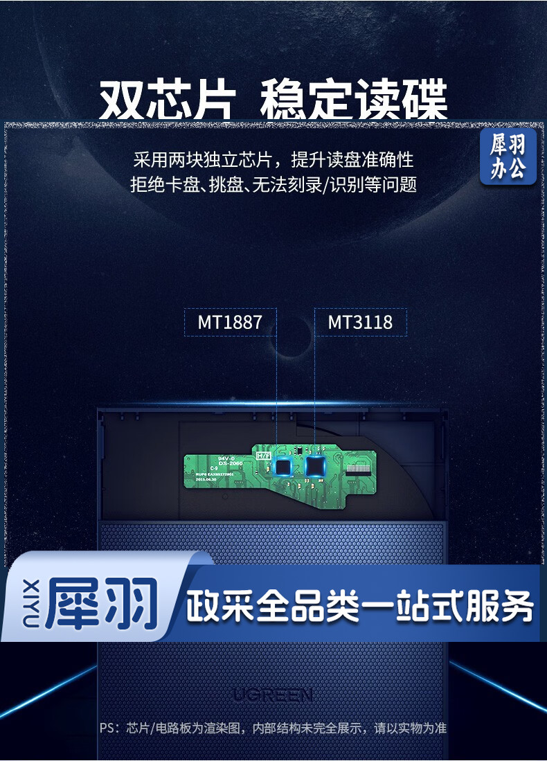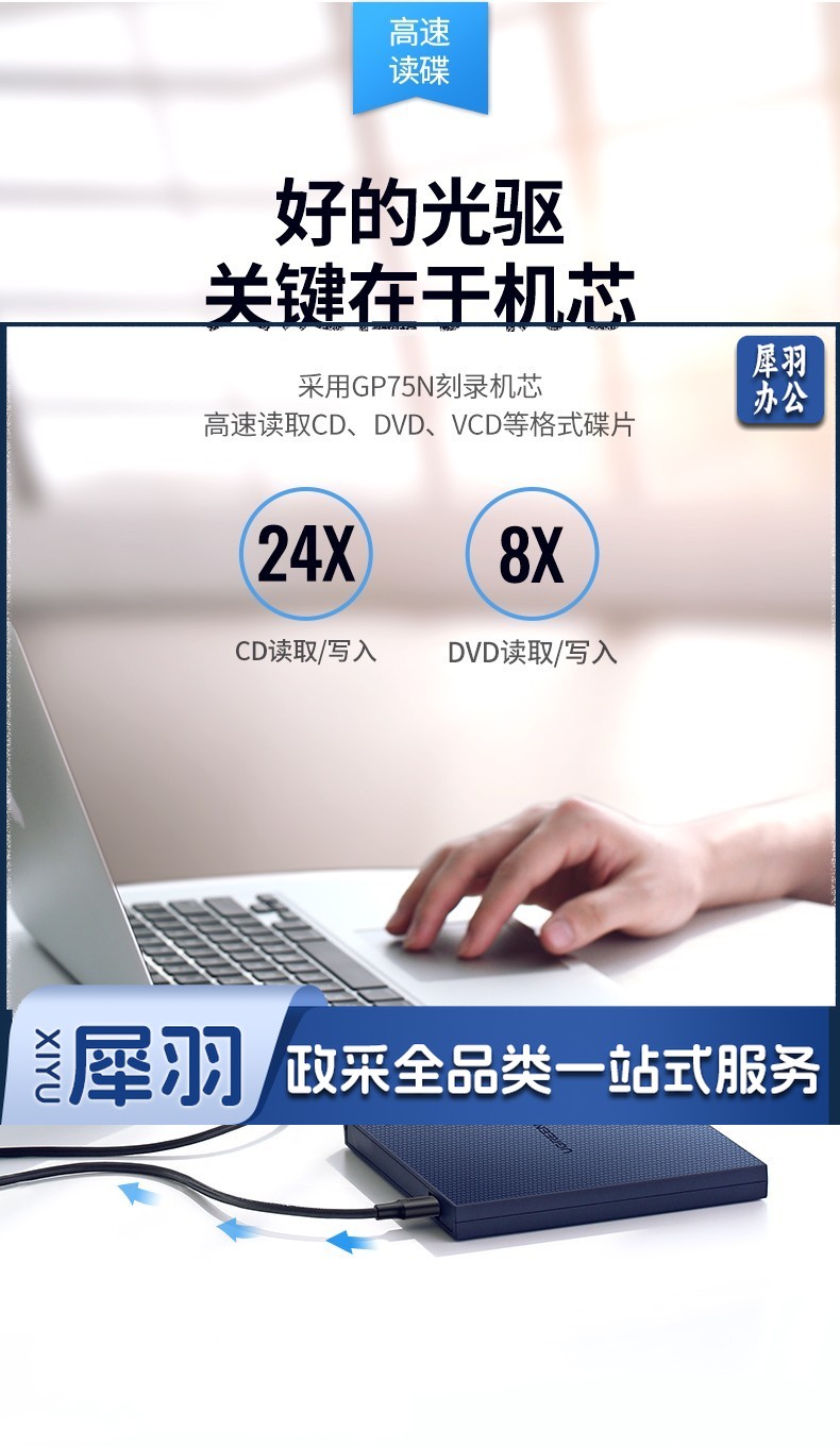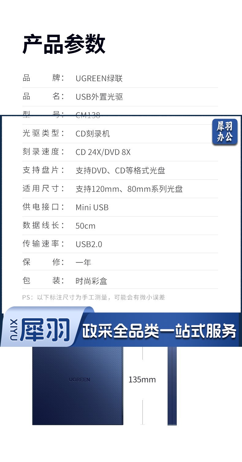 绿联(UGREEN)40576 外置光驱盘USB-C接台式Type-C笔记本电脑刻录机DVD/CD/VCD通用8/CD24倍速 USB款 免装驱动
