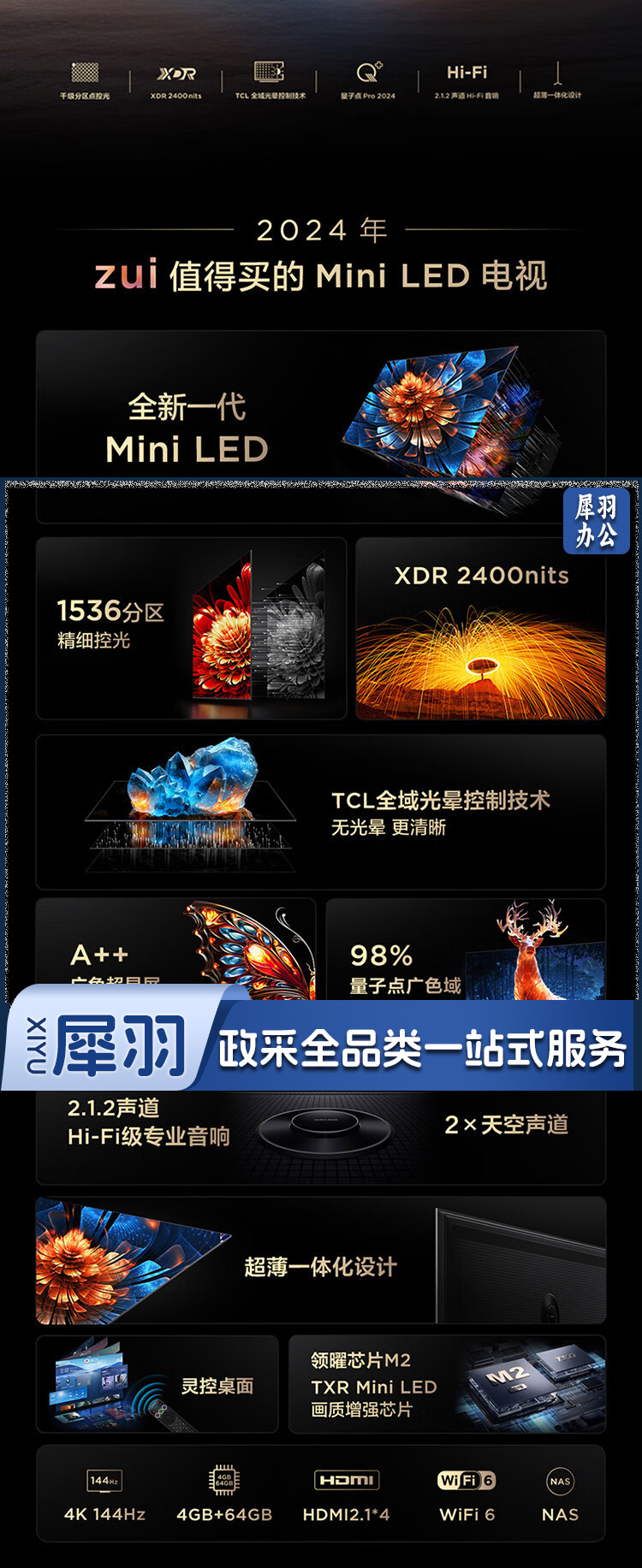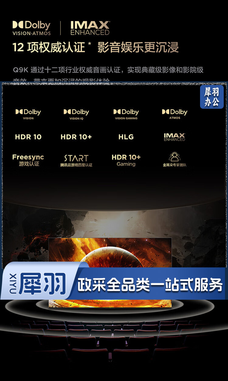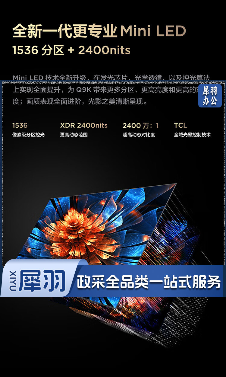 TCL电视 75Q9K 75英寸 Mini LED 1248分区 XDR 2400nits QLED量子点 超薄 4K大屏 液晶智能平板电视机(送装一体机含挂架)