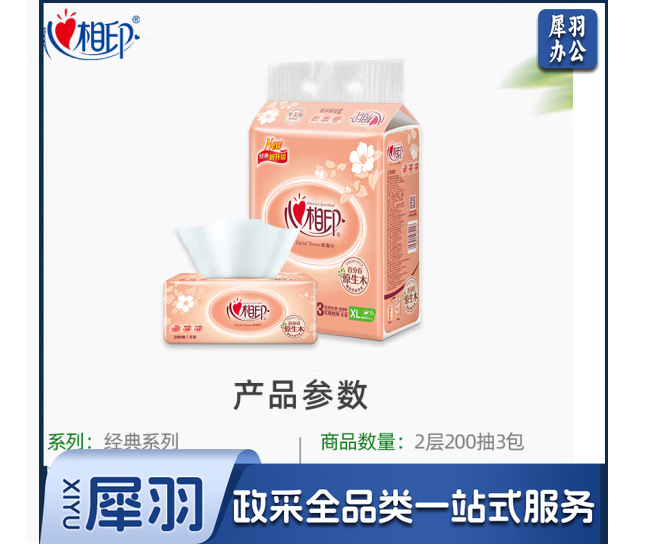 心相印抽纸 200抽3包/提 5提装
