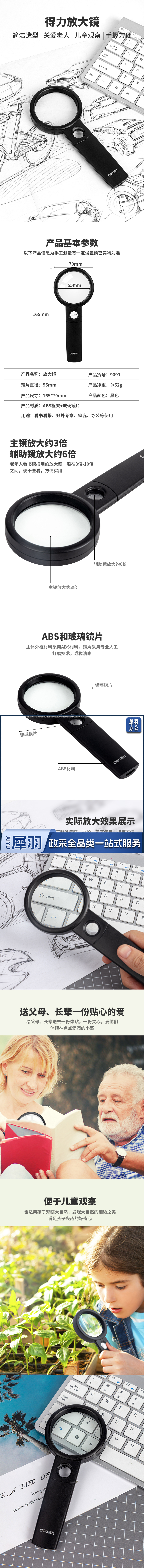 得力 放大镜镜片直径55mm 9091
