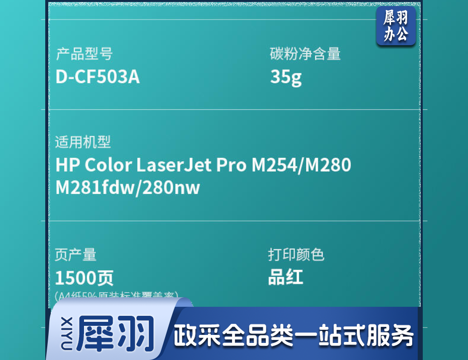 得力D-CF503A激光碳粉盒(品红)(支) 适用机型:惠普 HP Color Laserjet Pro M254/ M280/M281fdw/280nw