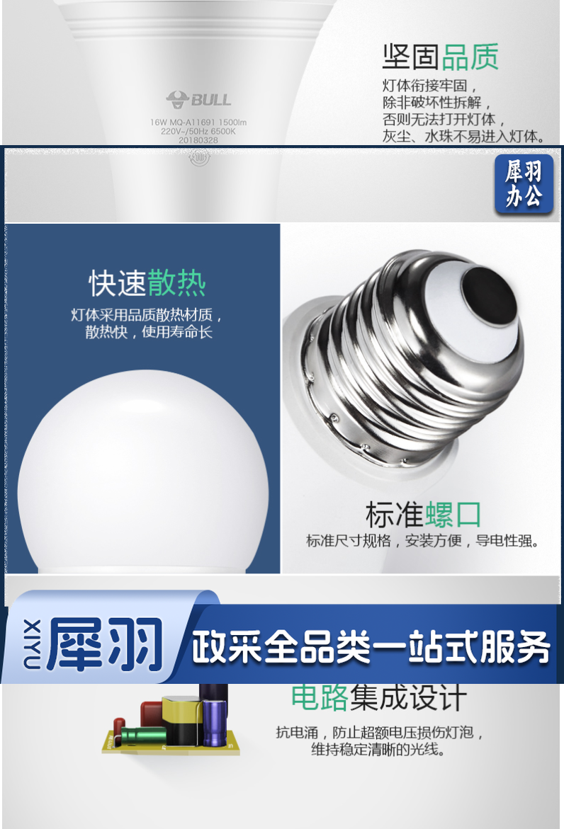 公牛(BULL)LED节能护眼灯泡 E27螺口 12W 白光