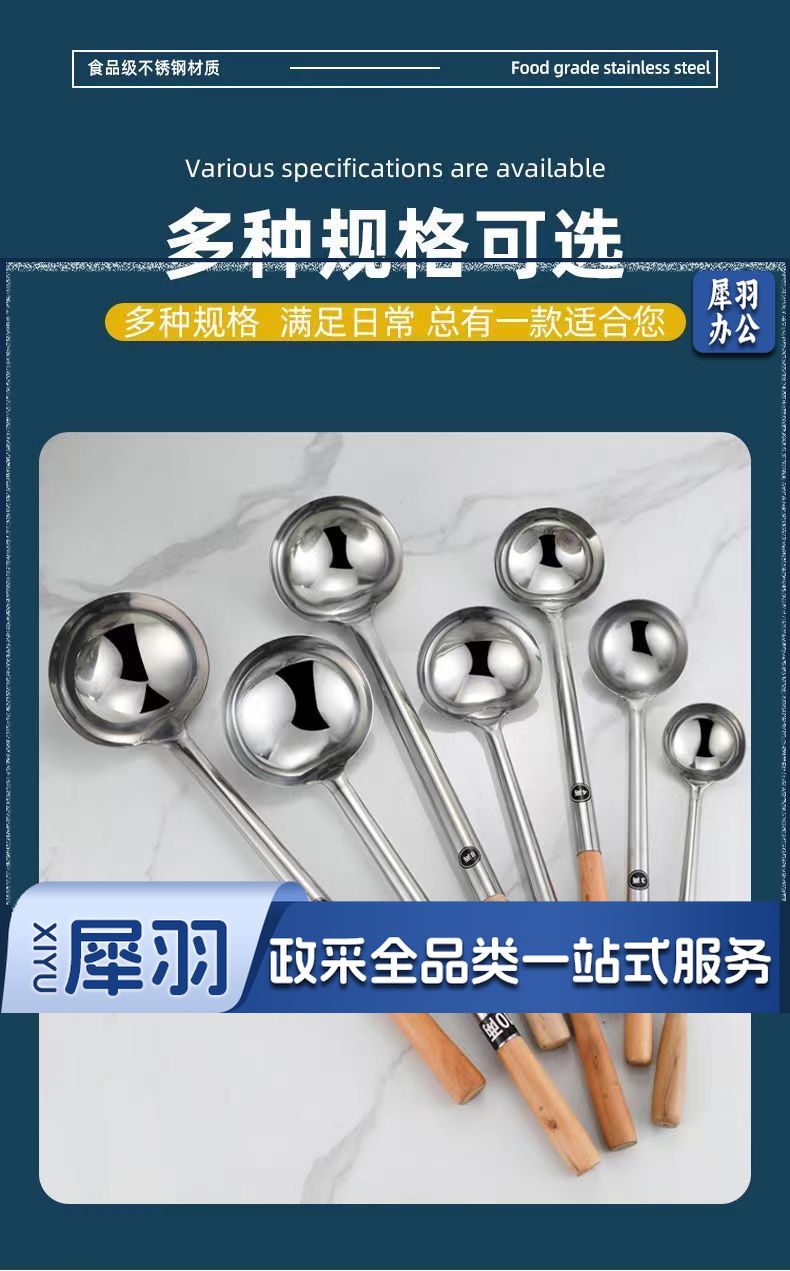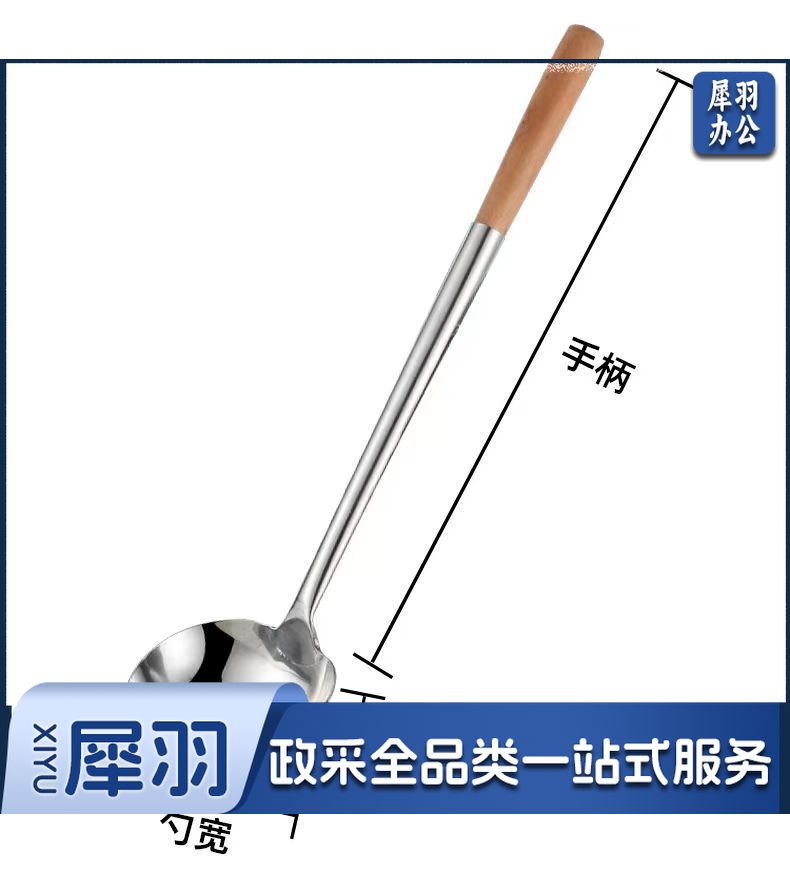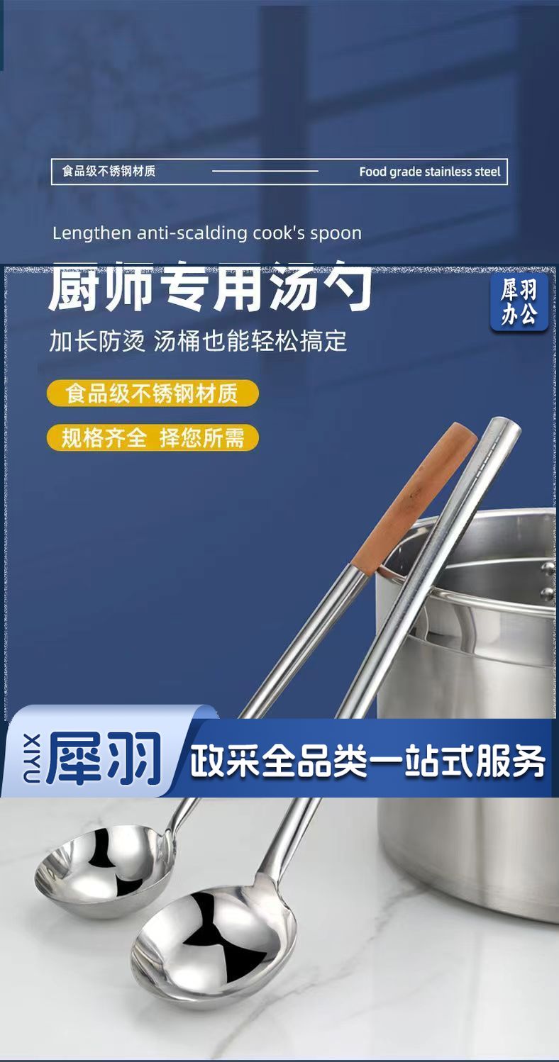 8两木柄[亮光加厚]不锈钢炒勺厨师专用炒菜勺子家用长柄老式汤勺大号商用粥勺分菜勺
