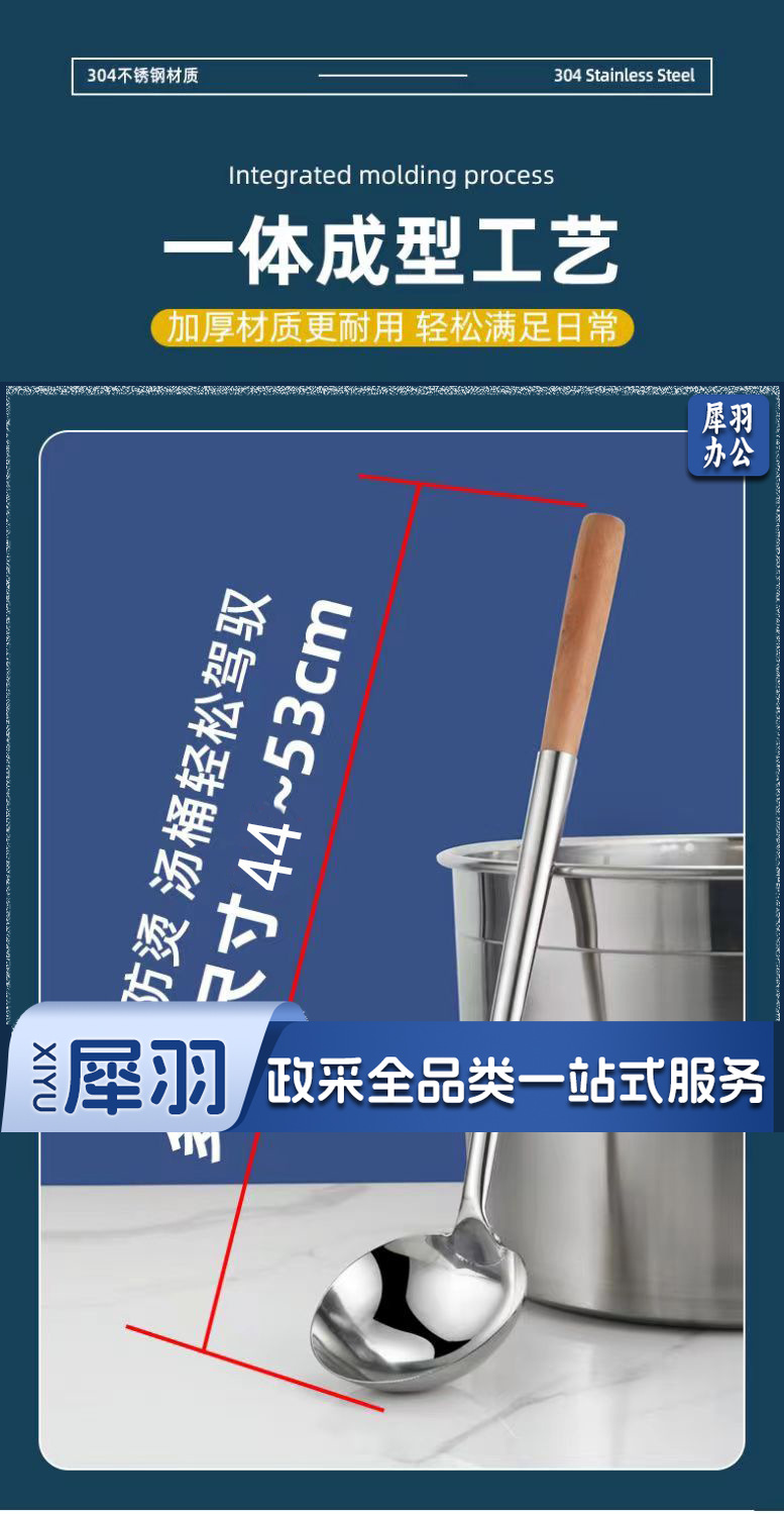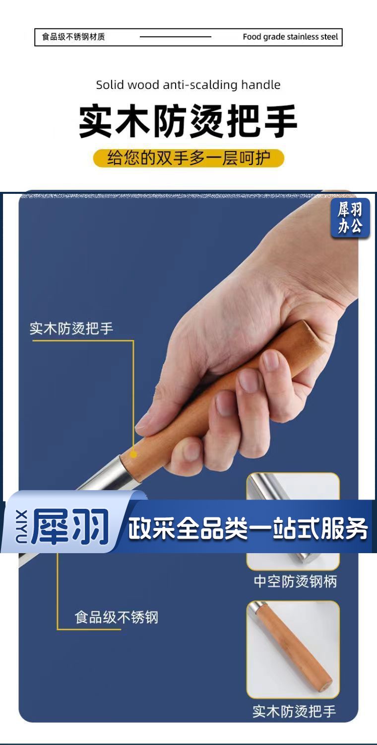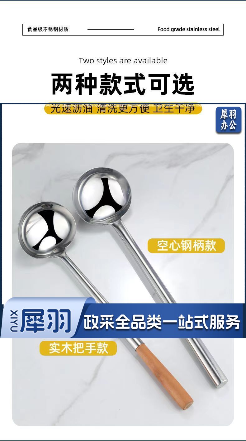 8两木柄[亮光加厚]不锈钢炒勺厨师专用炒菜勺子家用长柄老式汤勺大号商用粥勺分菜勺
