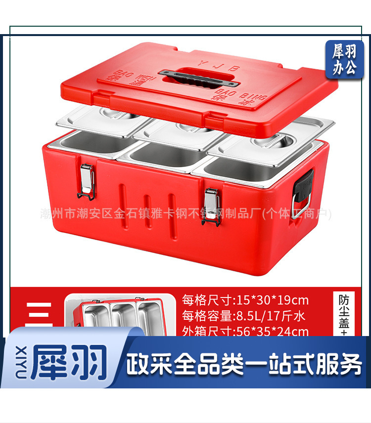 保温箱商用摆摊食堂快餐饭菜冷热两用保温桶分格大容量露营大饭桶(3格保温箱)