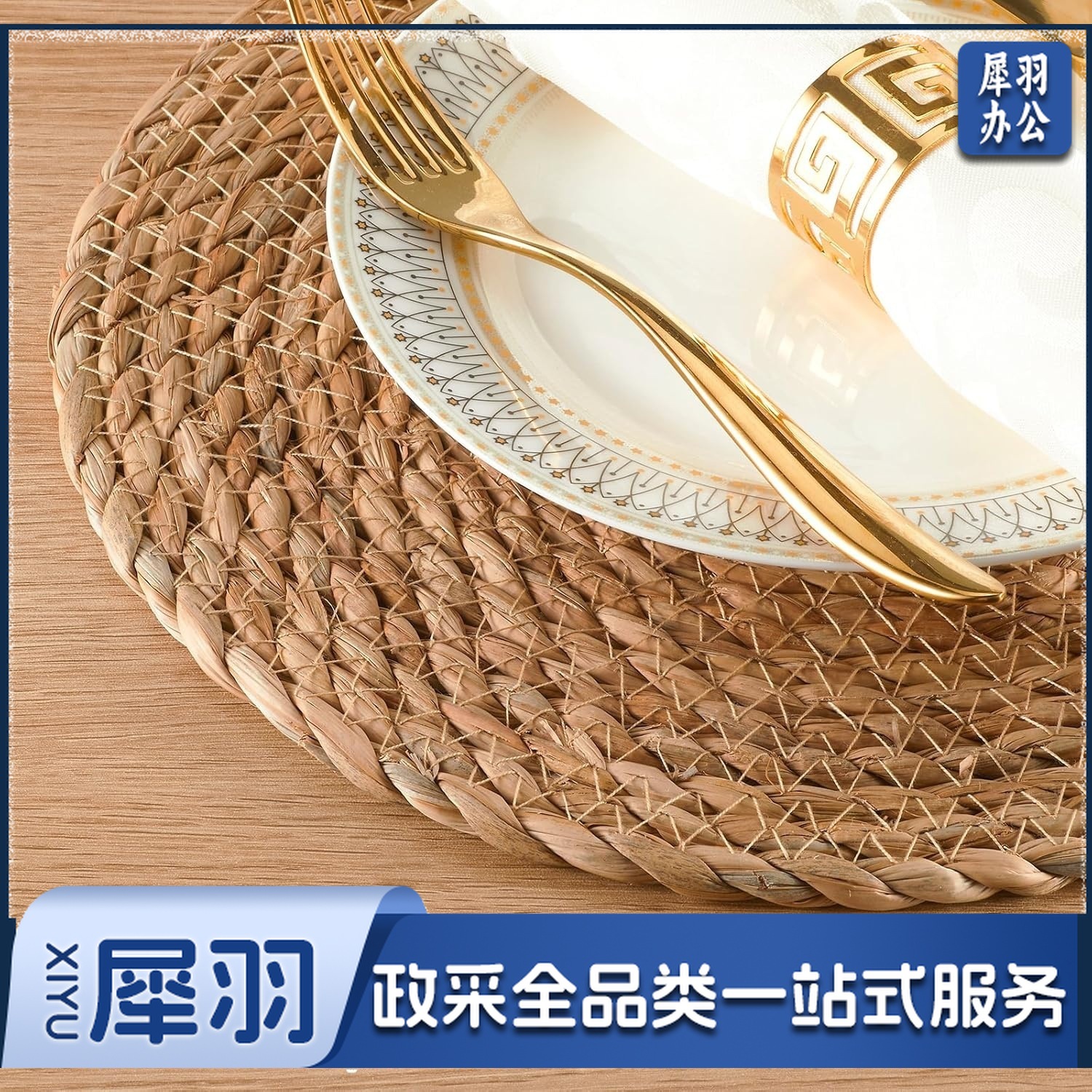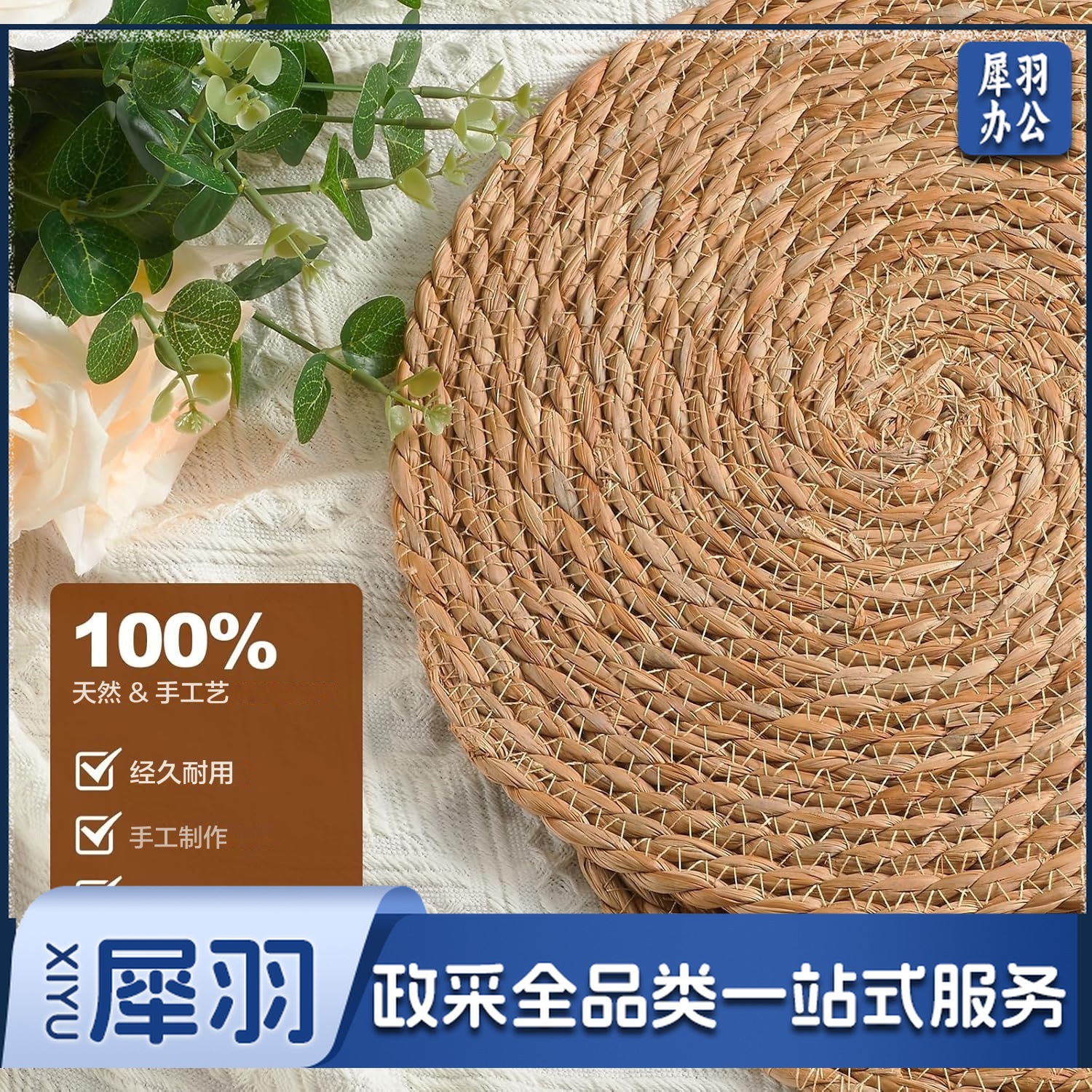 蒲草草编餐垫隔热垫杯垫碗垫波西米亚藤制餐垫天然手工编织西餐垫(38cm)