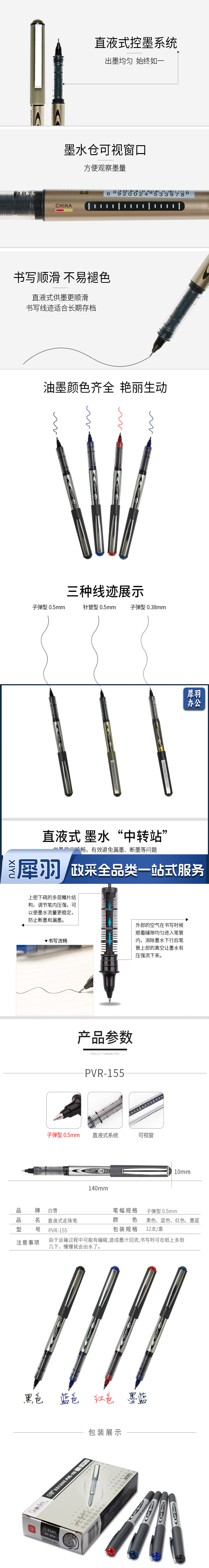 白雪 PVR-155 直液式走珠笔 子弹型0.5 红色 12支/盒 单位:盒