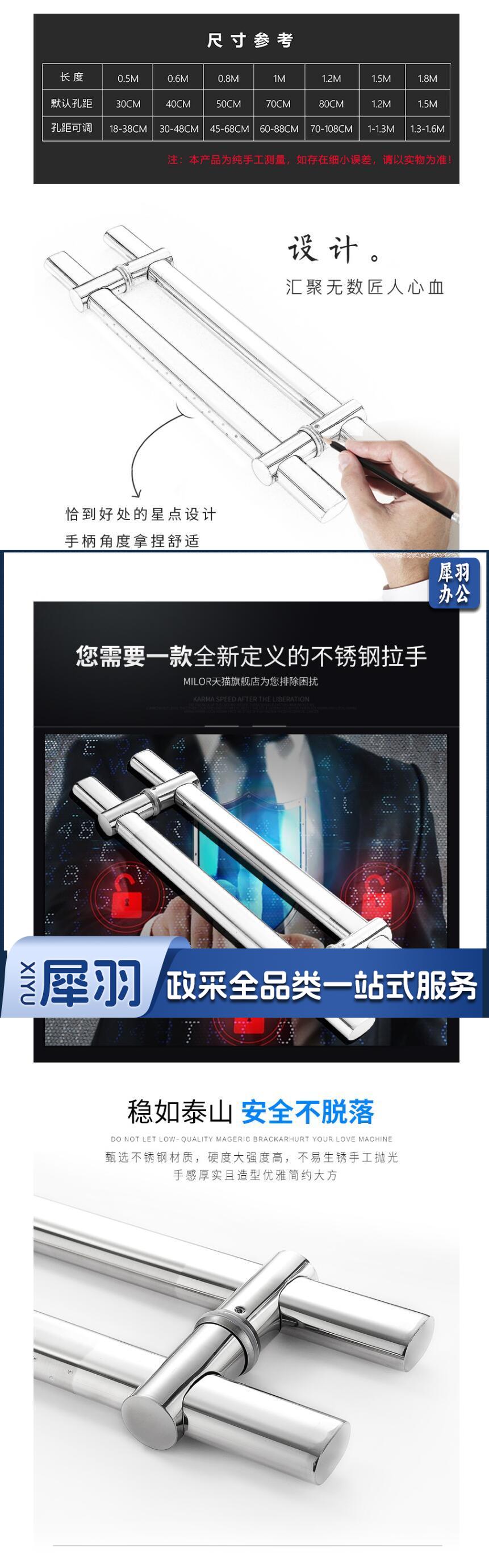 玻璃门拉手 钢化玻璃门把手 可调节孔距 管长60cm 孔距40cm 货号:JC