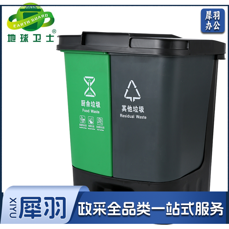 地球卫士 40L双桶脚踏垃圾桶带盖分类垃圾桶厨房商用塑料40升垃圾桶(绿+黑)