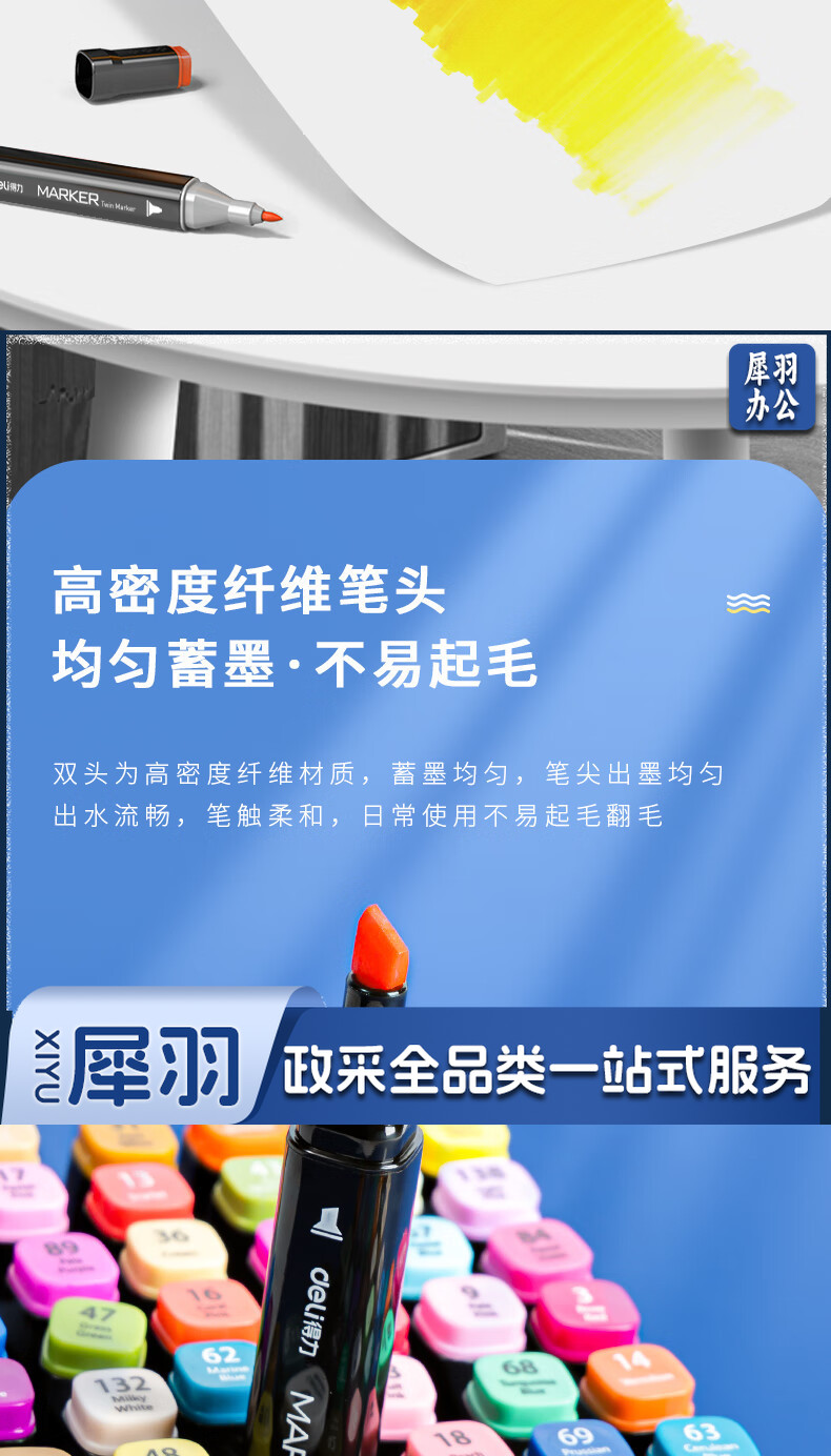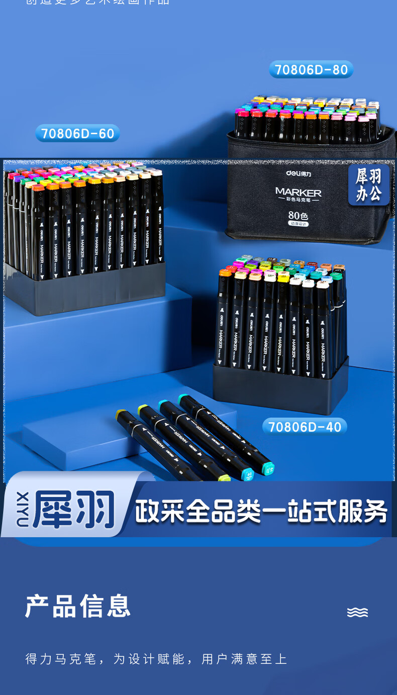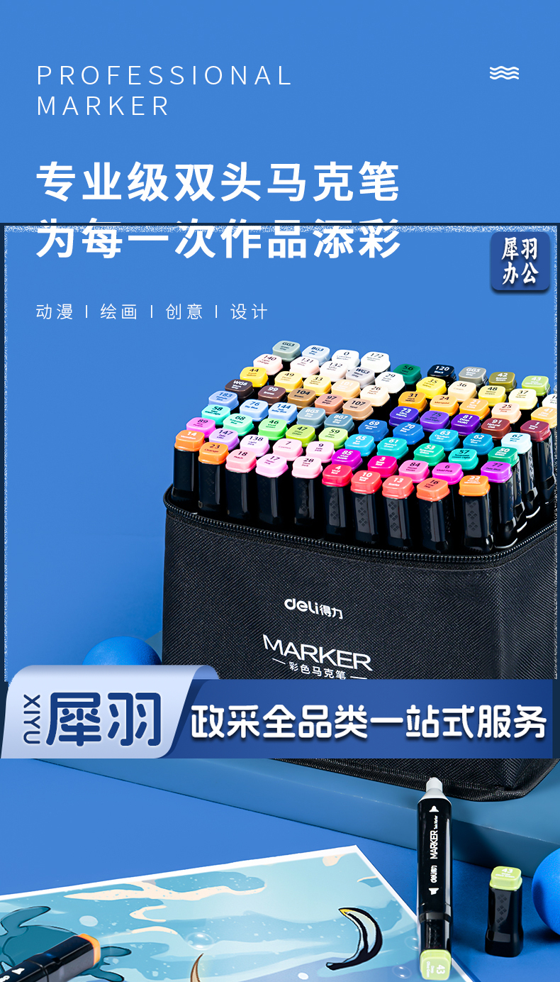 得力(deli)40色速干马克笔涂色套装水彩笔记号笔 绘画手绘涂鸦笔画笔 70806D-40