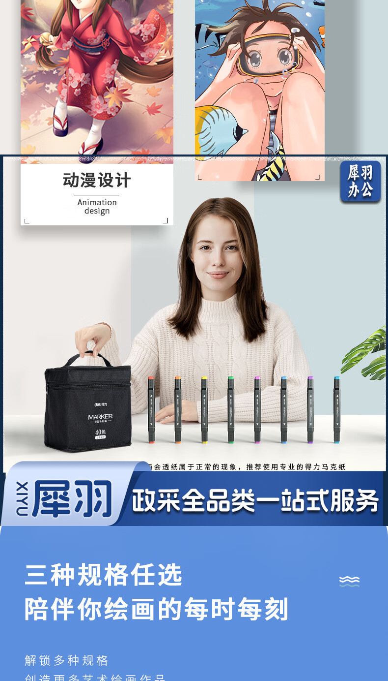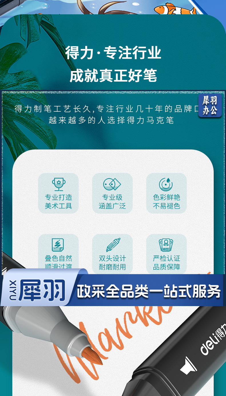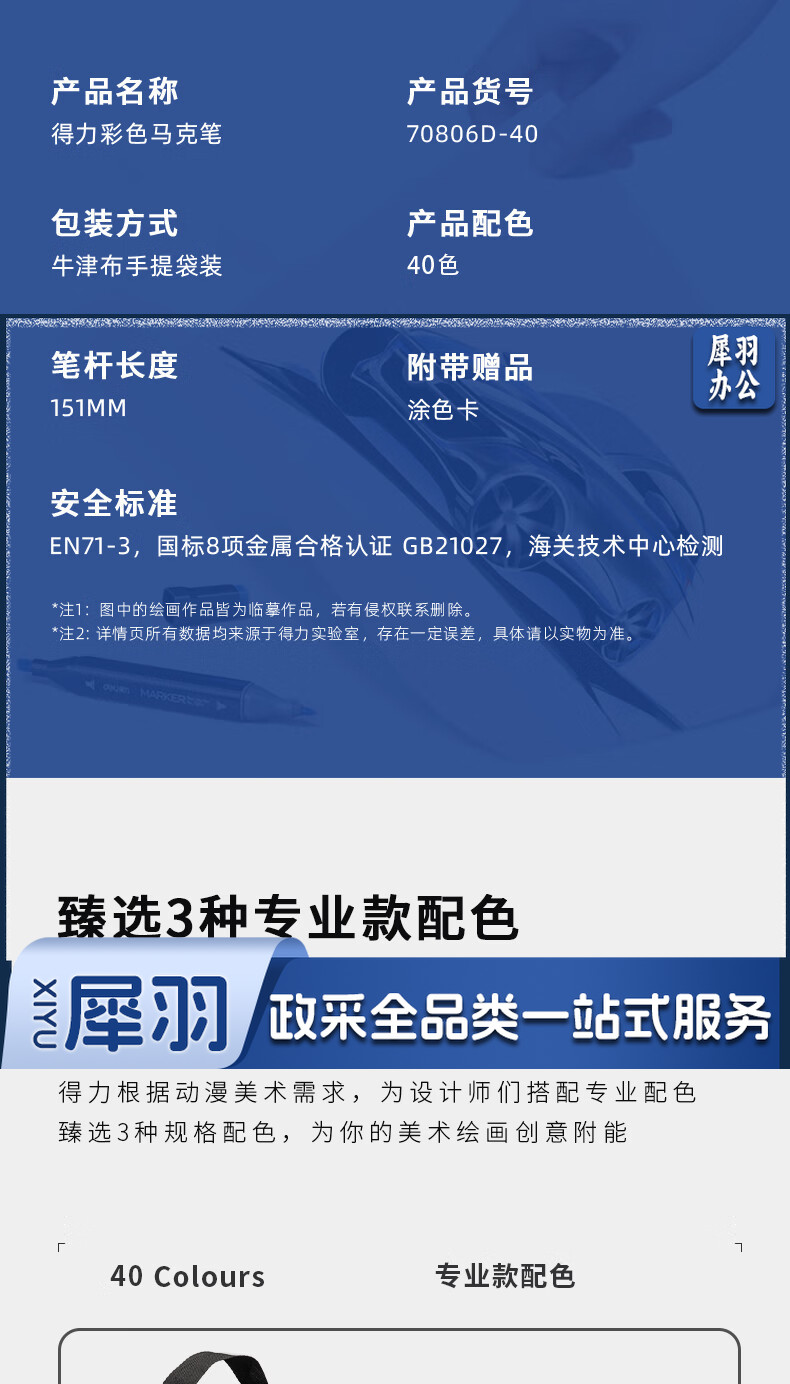 得力(deli)40色速干马克笔涂色套装水彩笔记号笔 绘画手绘涂鸦笔画笔 70806D-40