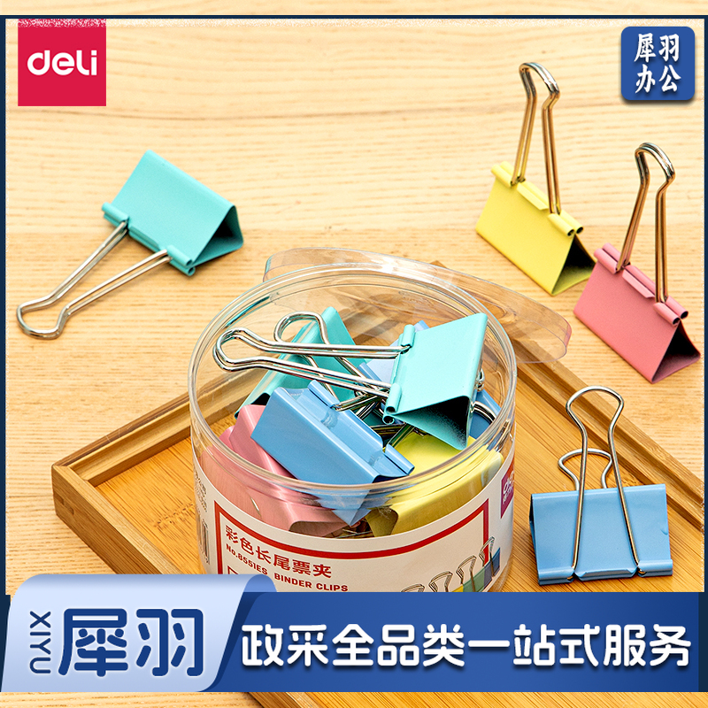 得力 8554ES 48只25mm彩色长尾夹票夹 4#中号金属燕尾夹票据文件夹子 办公用品