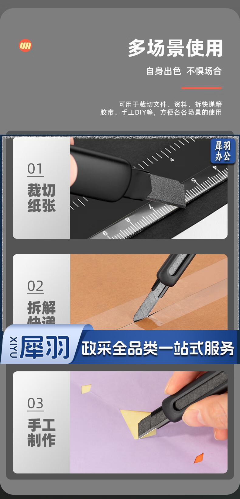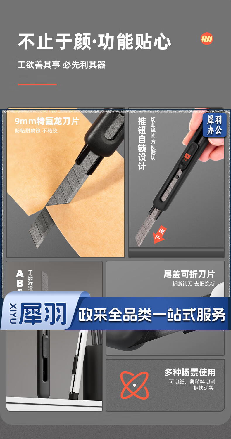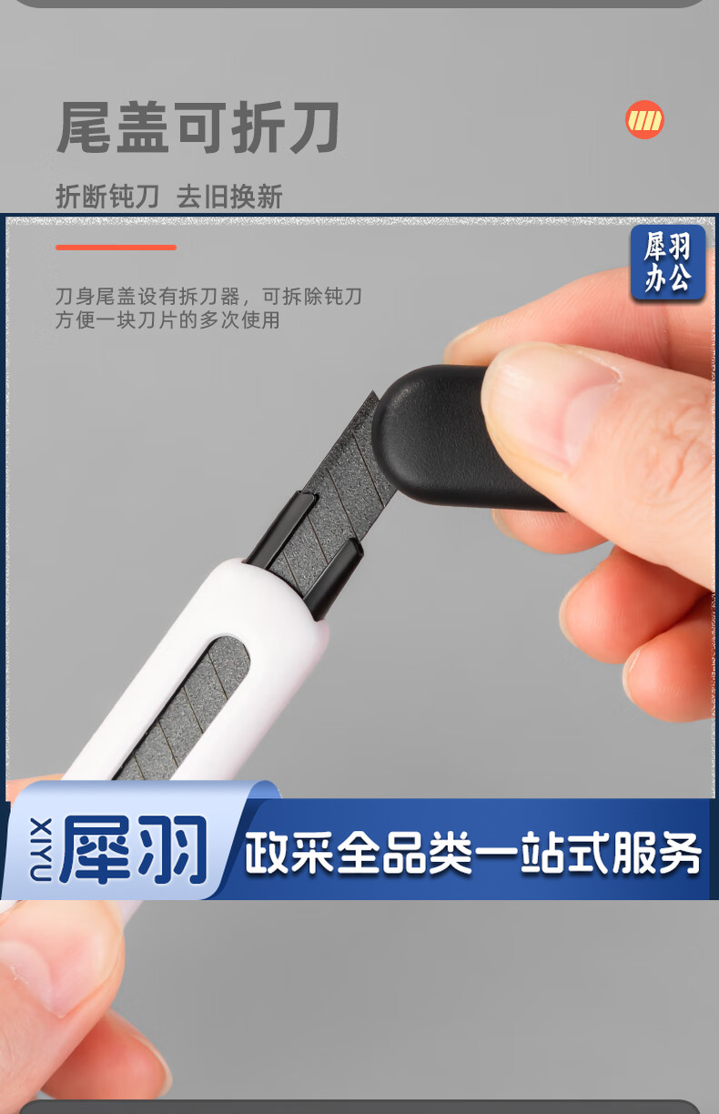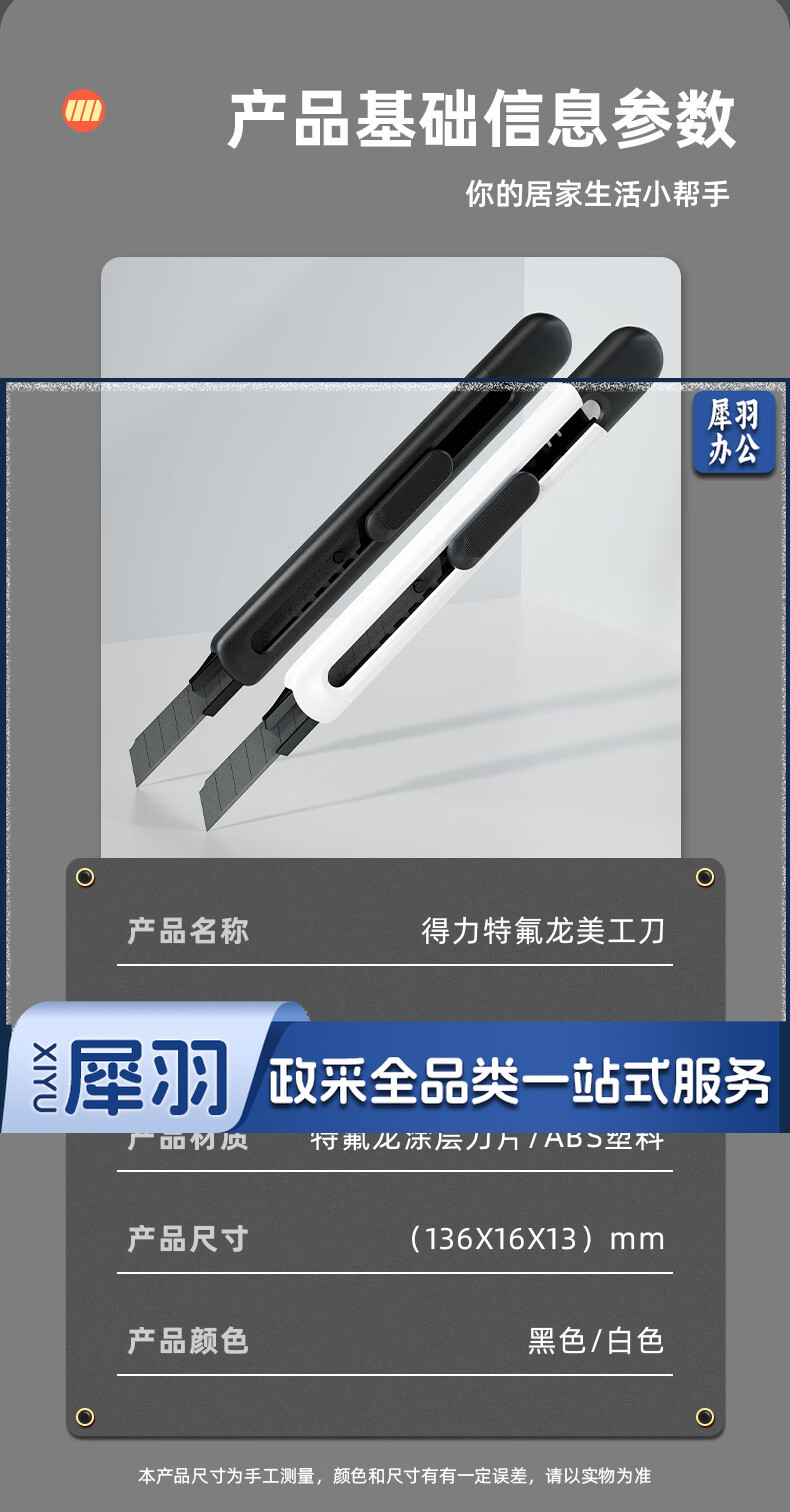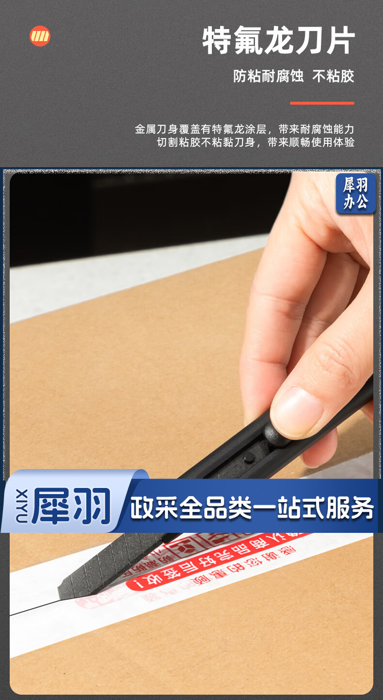 得力(deli)小号特氟龙刀刃美工刀壁纸刀裁纸刀 防粘防黏不易粘连 办公用品 尾部自带折刀器 白色 TD301