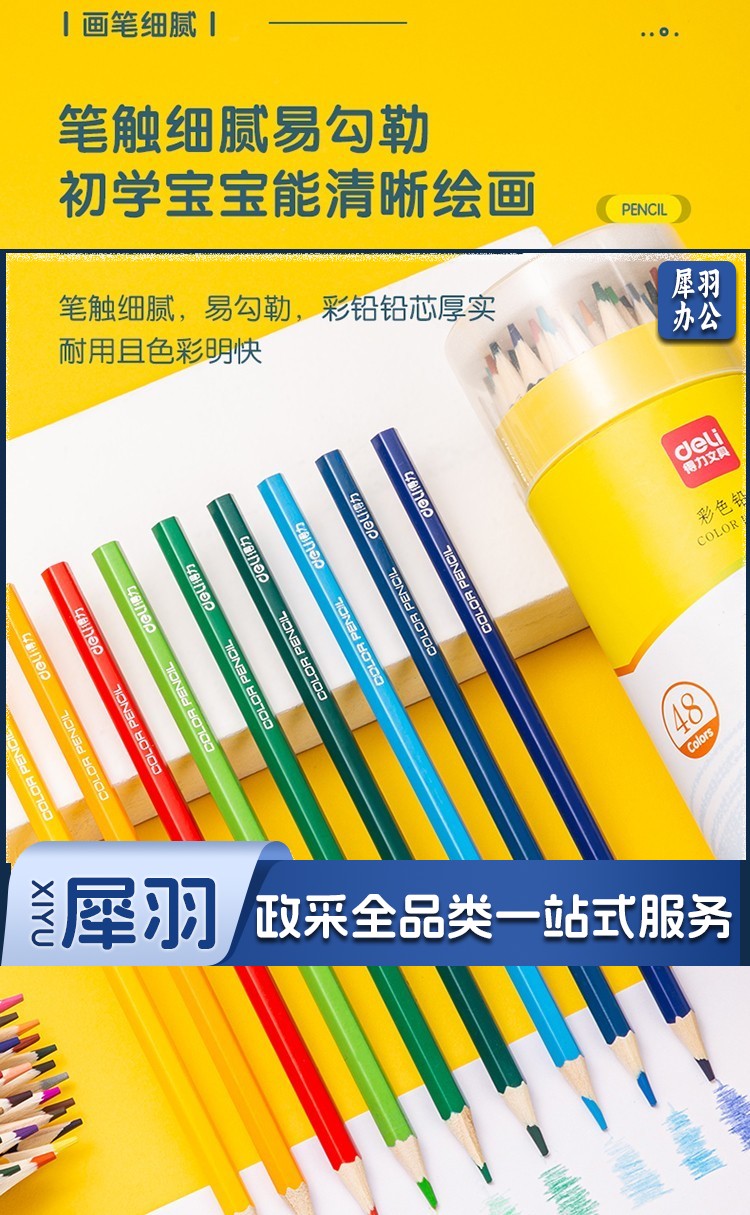 得力(deli)48色油性彩铅 原木六角杆彩色铅笔 学生绘画涂色画笔画具画材美术套装