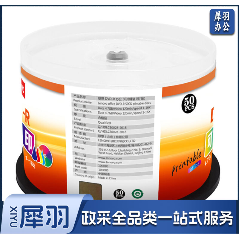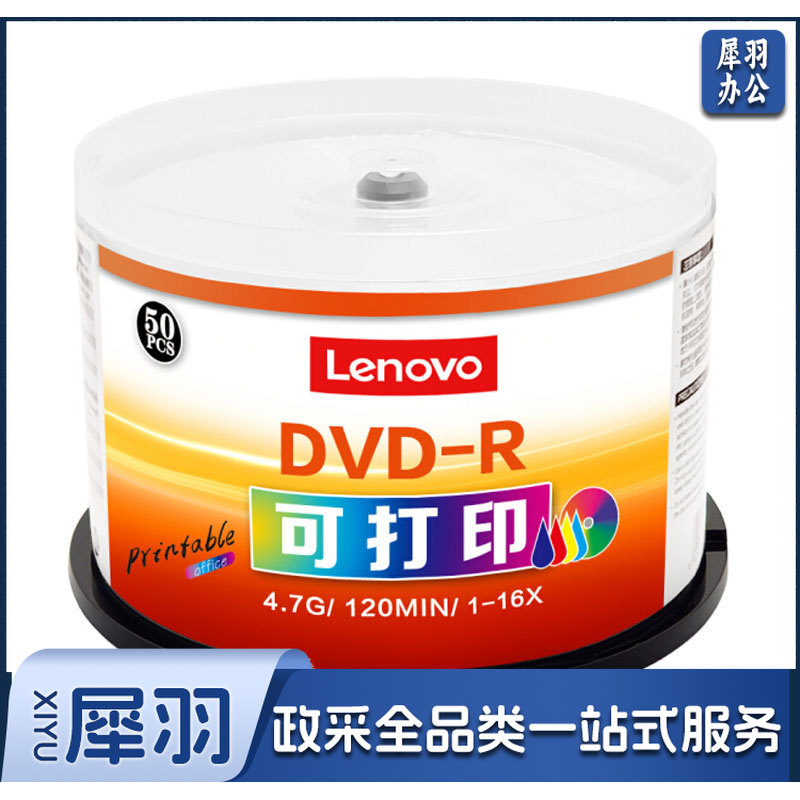 联想(Lenovo)DVD-R 空白光盘/刻录盘 16速4.7GB 桶装50片 可打印