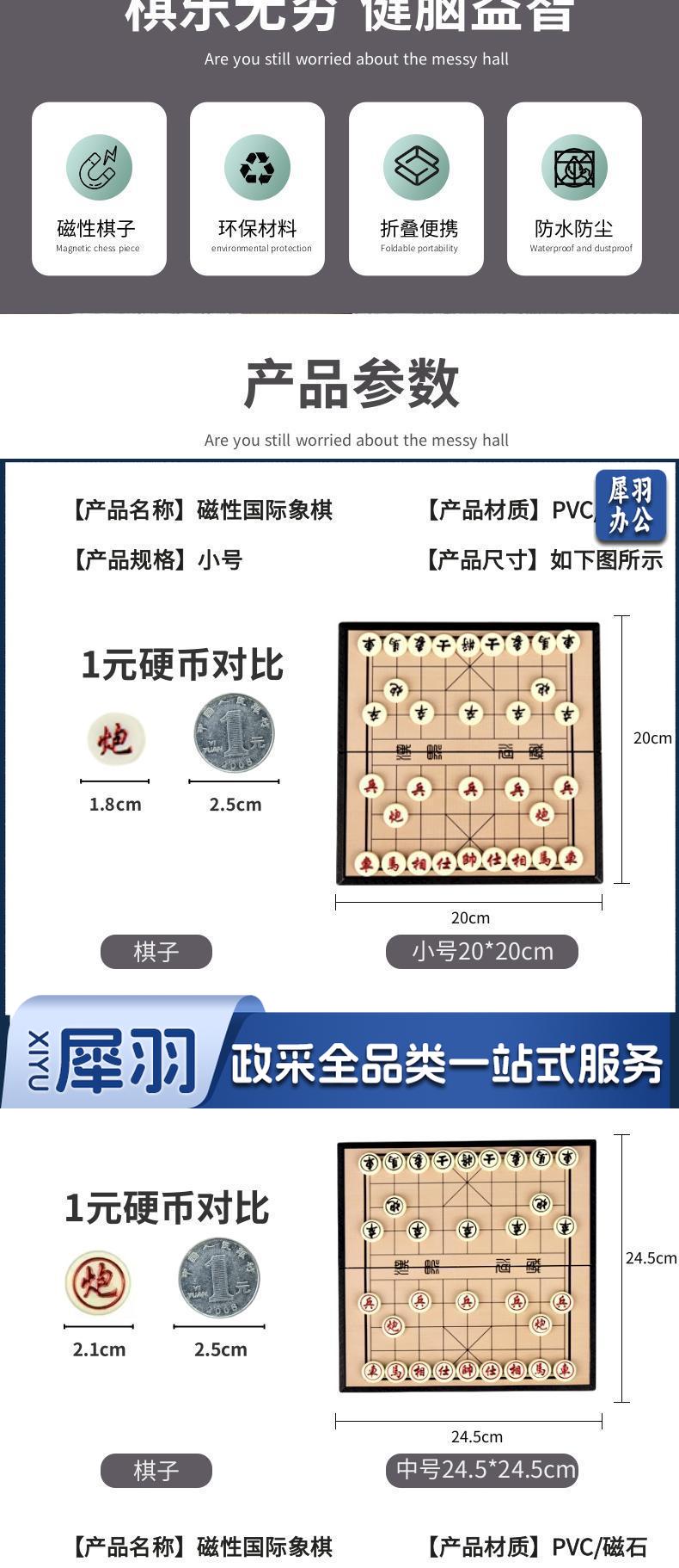 加大号磁吸中国象棋折叠便携式儿童学生带棋盘专用棋子套装