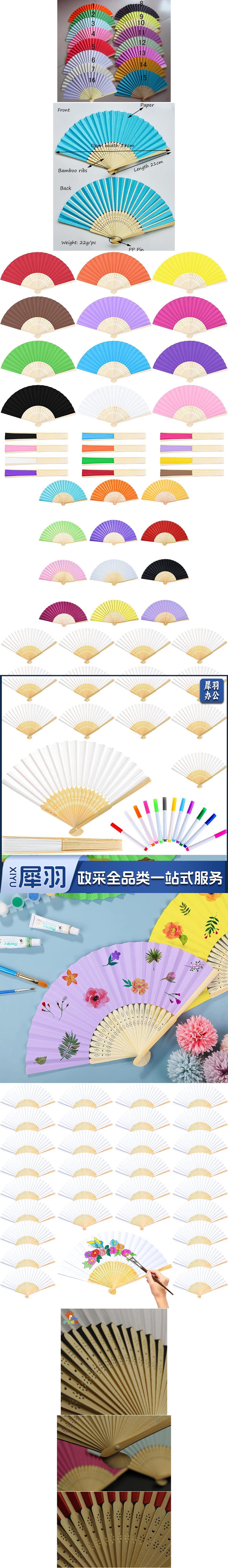 白纸扇 DIY纸扇空白色折扇彩色儿童绘画扇子手工涂色素面混色