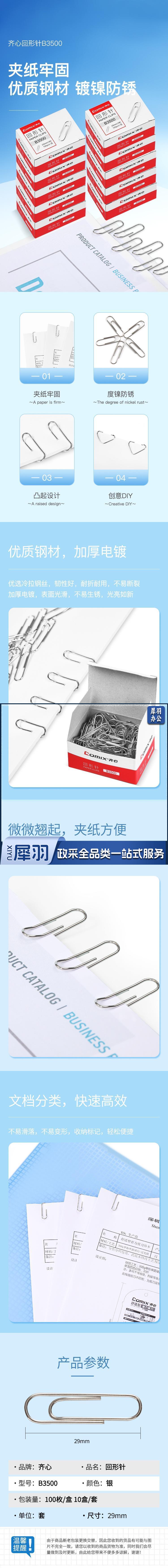齐心/COMIX B3500 回形针 29mm 100枚/盒 10盒/套 镍 单位:套