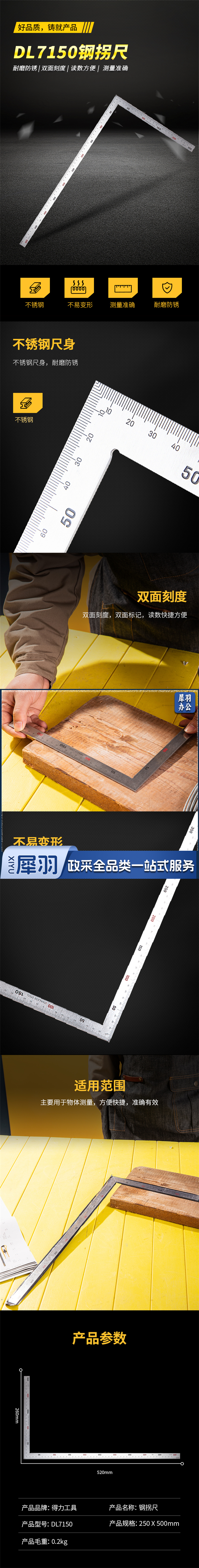 得力工具DL7150钢拐尺250x500mm(单位:把)