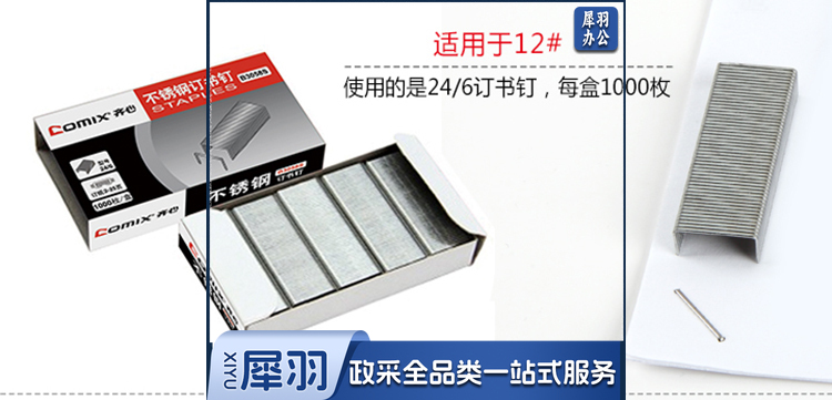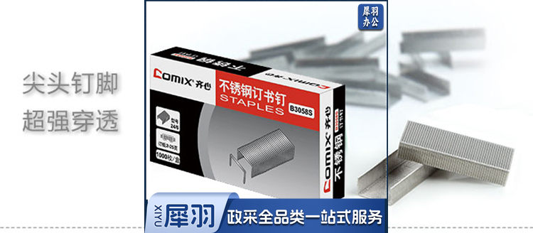齐心/COMIX B3058S 不锈钢订书钉 24/6 1000枚/盒 镍 单位:盒
