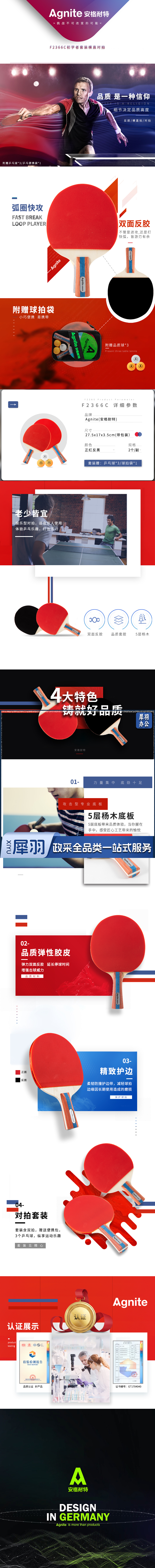 安格耐特F2366C乒乓球拍横直对拍(正红反黑)(2支/副)(带三球)