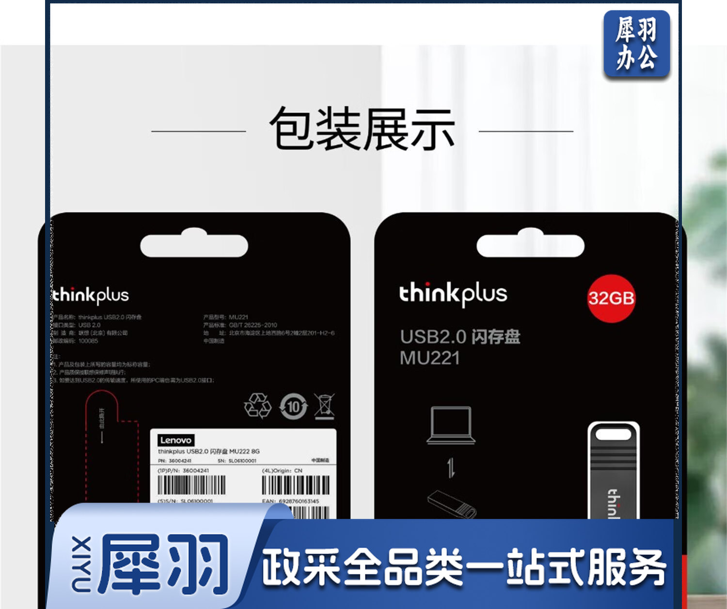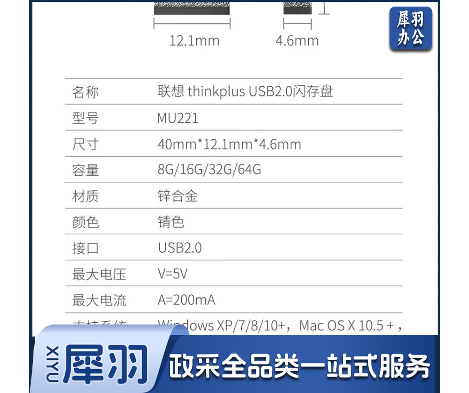 联想 ThinkPad 联想thinkplus USB2.0金属闪存盘 即插即用商用U盘 优盘 MU221闪存盘 64G / 个
