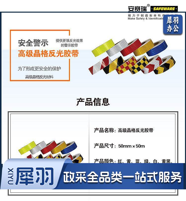 安赛瑞14362晶格反光警示胶带黄黑50mm*50m(卷)