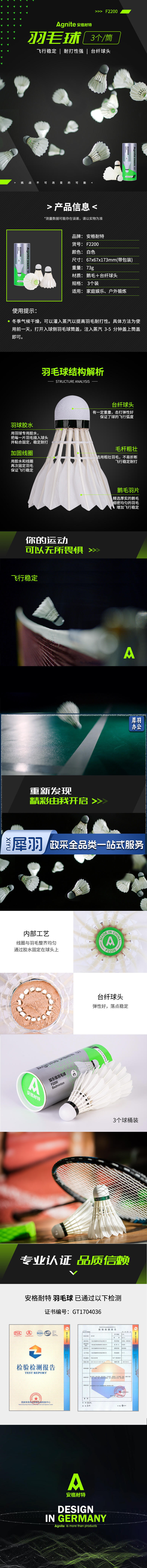 安格耐特F2200羽毛球(白色)(3个/筒)
