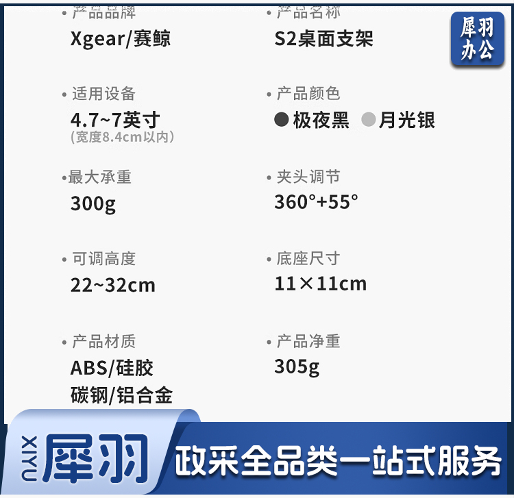 赛鲸/XGear S2升降款 手机支架 0-50cm 黑色(单位:个)