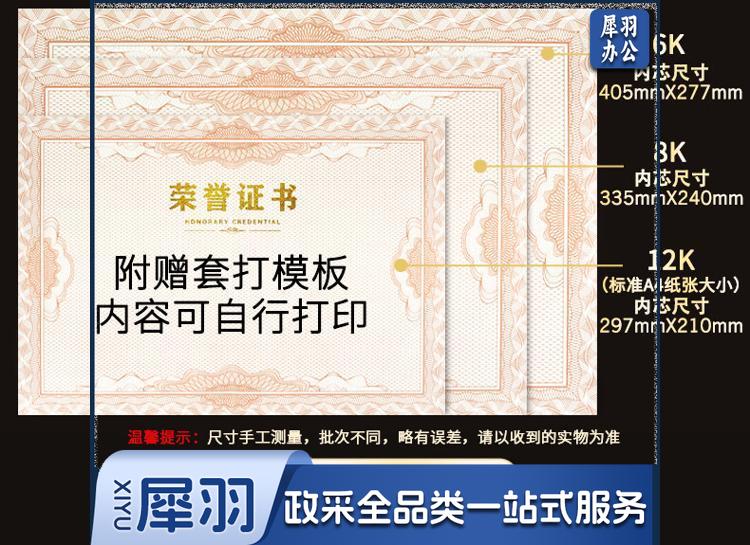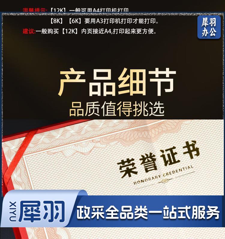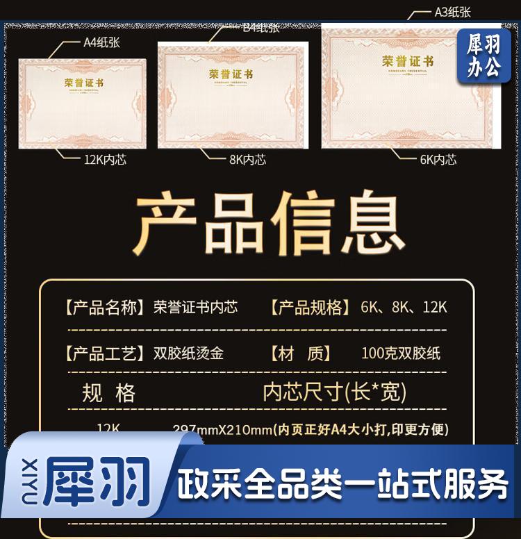 浩立信 A5902 8K荣誉证书内芯 10张/包 单位:包