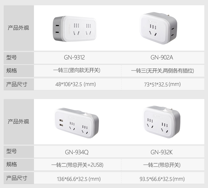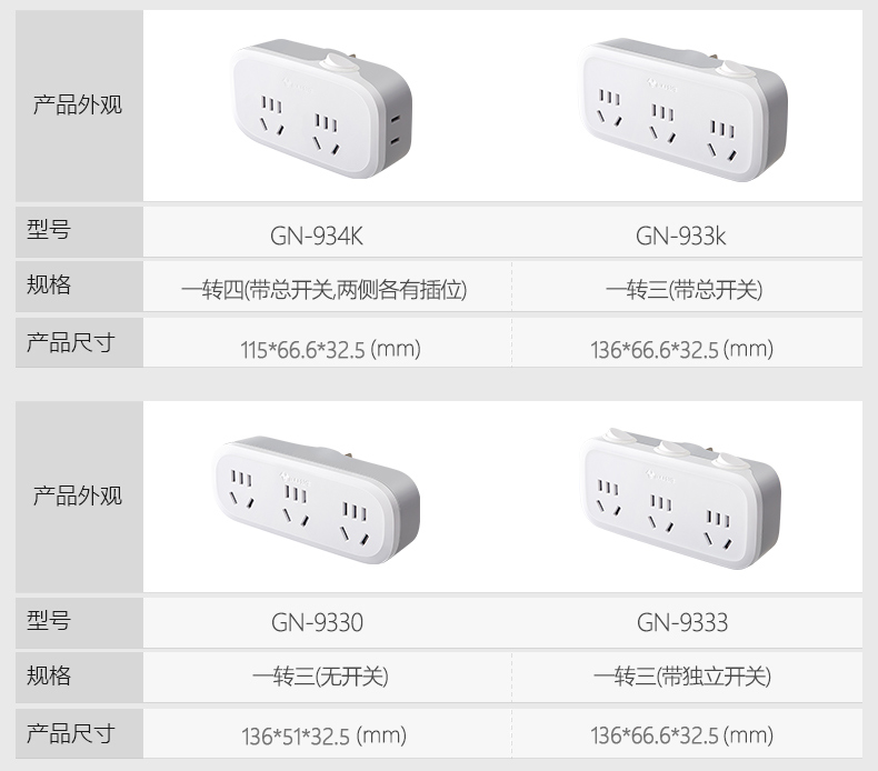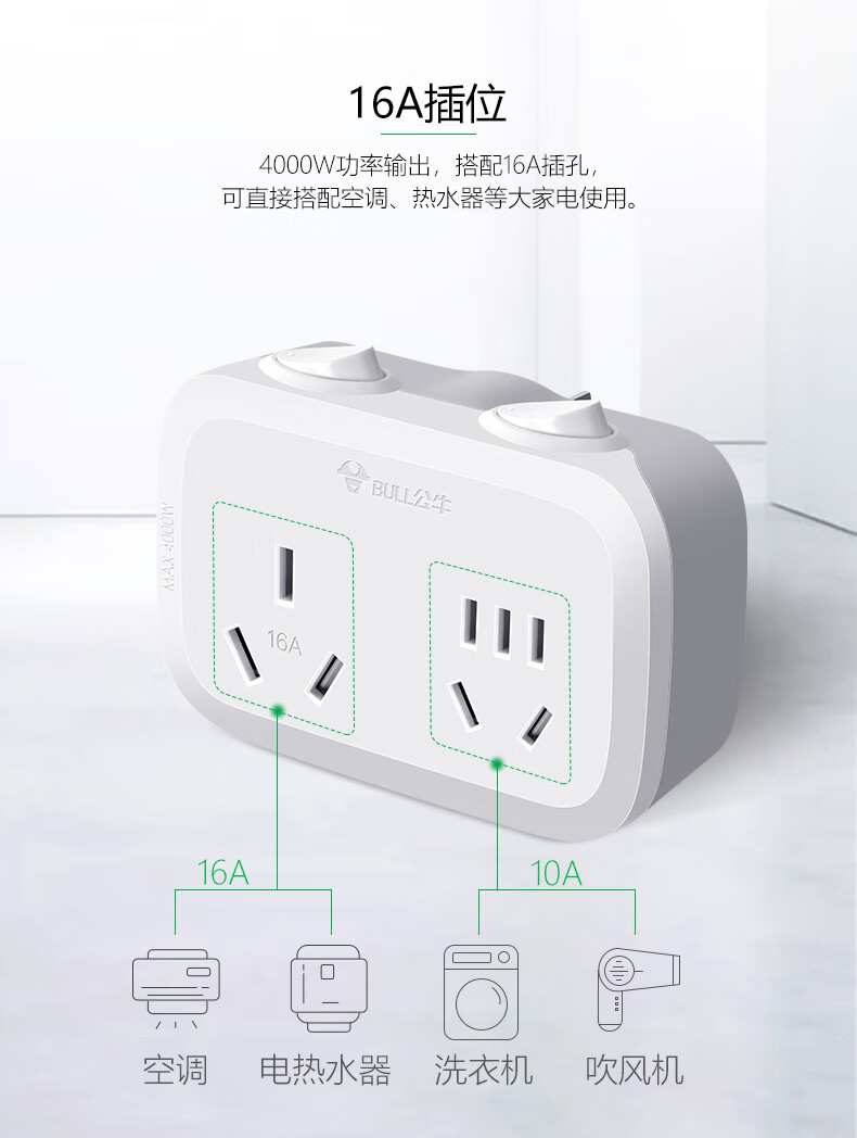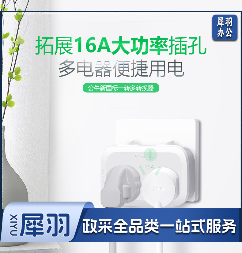 公牛插座转换器一转二扩展器多用多功能插座板转换器三孔一拖三家用插头多项电源转接头 带3开关 可插3个电器GN-96033